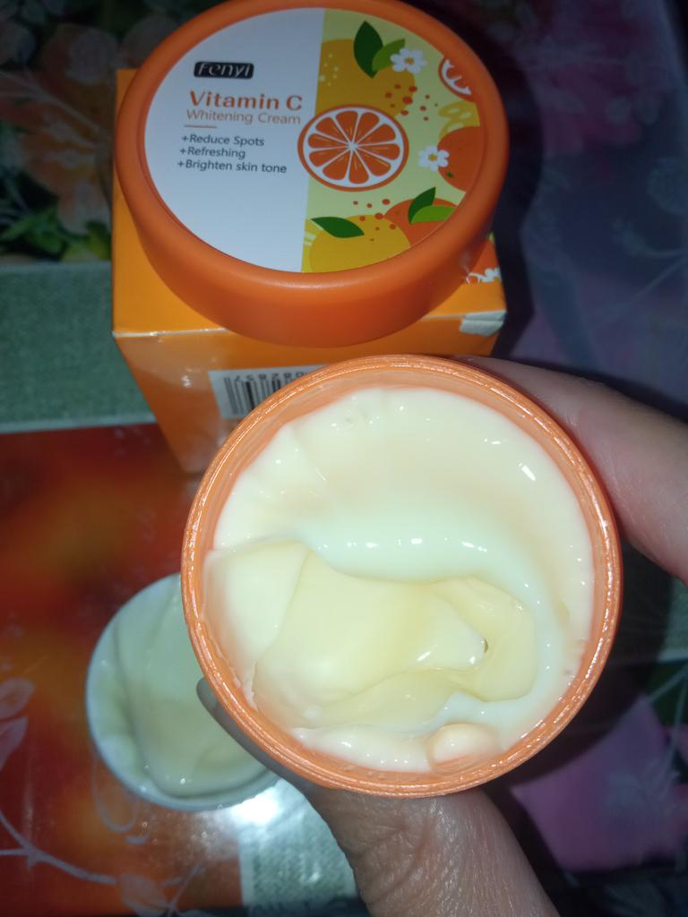 Хороший крем с витамином🍊🍋 Беру второй раз. У данного крема текстура кремообразная, лёгкая. Крем желтоватого цвета, имеет приятный аромат цитрусовых🍋🍊 Баночка небольшая, всего 40г, красивый дизайн, можно на подарок🎁, есть защитная крышечка, пришёл в запаянной коробочке, без повреждений, продавцу спасибо🤗. У крема достаточно плотная нежирная текстура, не липкий, быстро впитывается, слегка увлажняет кожу. Срок годности до 23.05.2029 Пришёл в одной посылке вместе с 6 товарами: кремом🍋 для рук, двумя серёжками, помадой💄и носками🧦