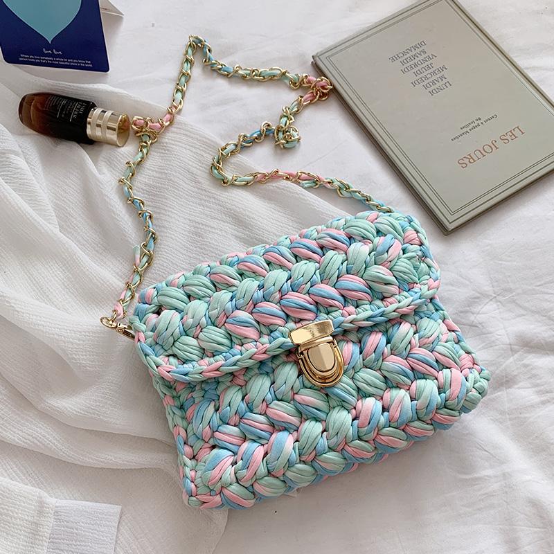 Тканые женские сумки через плечо ручной работы, вязаная сумка на ремне с нитками на крючках, разноцветные сумки с цепочками в полоску для женщин, маленькие кошельки 2021