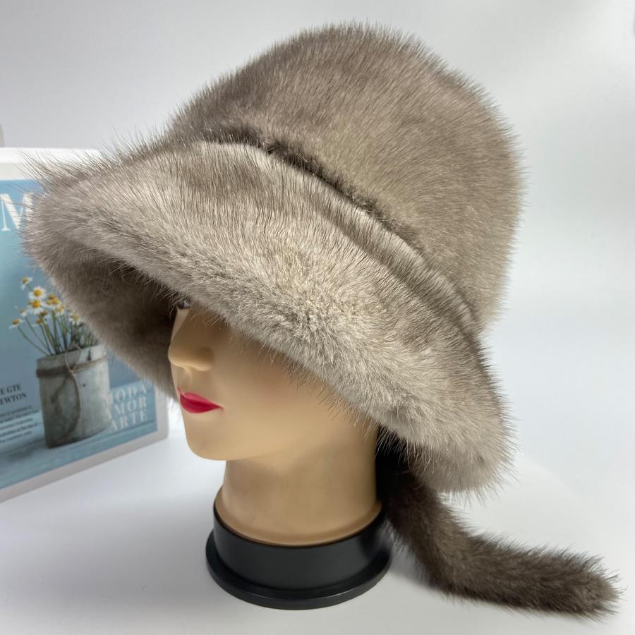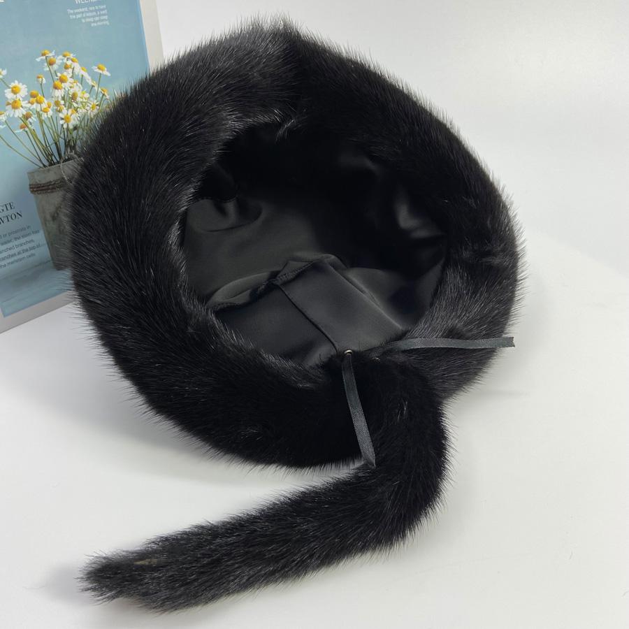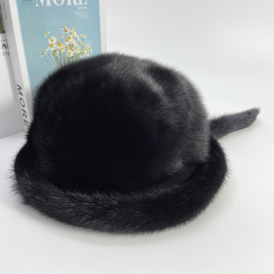 Теплая зимняя шапка из снежного меха норки с хвостом, пушистая женская советская шапка, шапка с пингвином, роскошная женская зимняя меховая шапка 2022