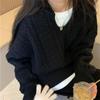 Свитер с V-образным вырезом средней длины с косами женский однотонный свободный женский вязаный свитер большого размера