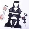 Aduloty Сексуальное эротическое белье, соблазнительная сетчатая марля, полые перспективы, увеличенное кольцо на шею, железное кольцо, соблазнительный женский комплект нижнего белья