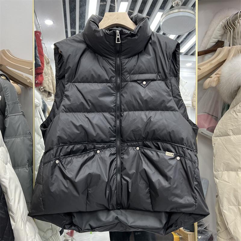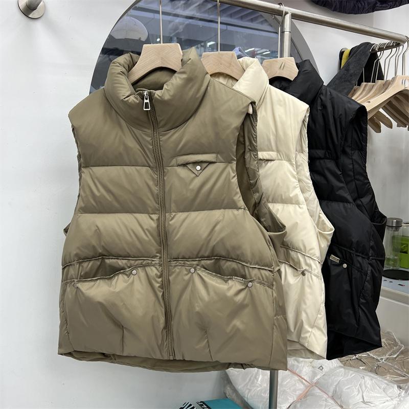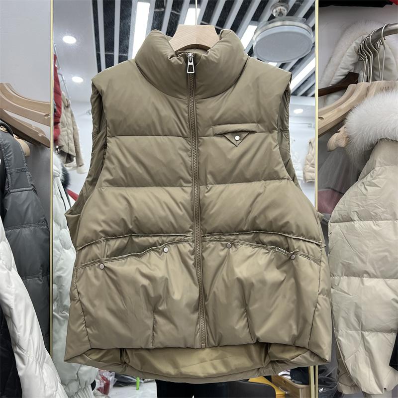 Зима-Осень, женский однотонный теплый жилет без рукавов с воротником-стойкой, женское шикарное пальто на белом утином пуху