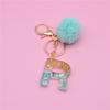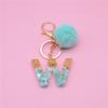 Подвеска-ключ с 26 инициалами и зеленым пушистым помпоном, модная сумка для девочек, блестящий градиентный полимерный брелок с алфавитом, подвески