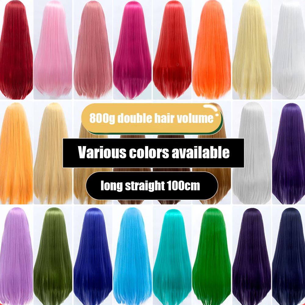 Длинный синтетический парик аниме для косплея 100 см с челкой, светлые, синие, красные, розовые, фиолетовые волосы для вечеринки — купить товар онлайн с бесплатной доставкой по всему миру!