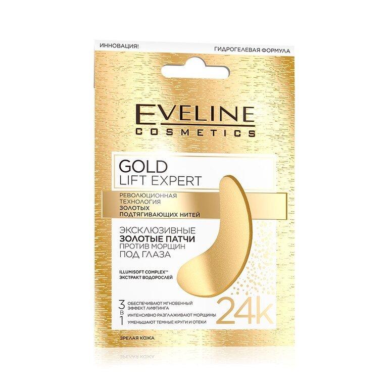 Состав средства обогащен специальным комплексом, содержащим натуральные экстракты гемамелиса и водорослей. Благодаря этим ингредиентам патчи улучшают микроциркуляцию крови, увлажняют, освежают и придают естественный блеск области вокруг глаз. Eveline Cosmetics Gold Lift Expert Luxury Anti-Wrinkle Golden Eye Pads содержит золото, которое стимулирует выработку коллагена, убирает пигментные пятна и продлевает молодость кожи.