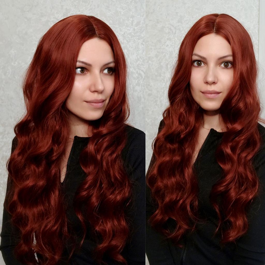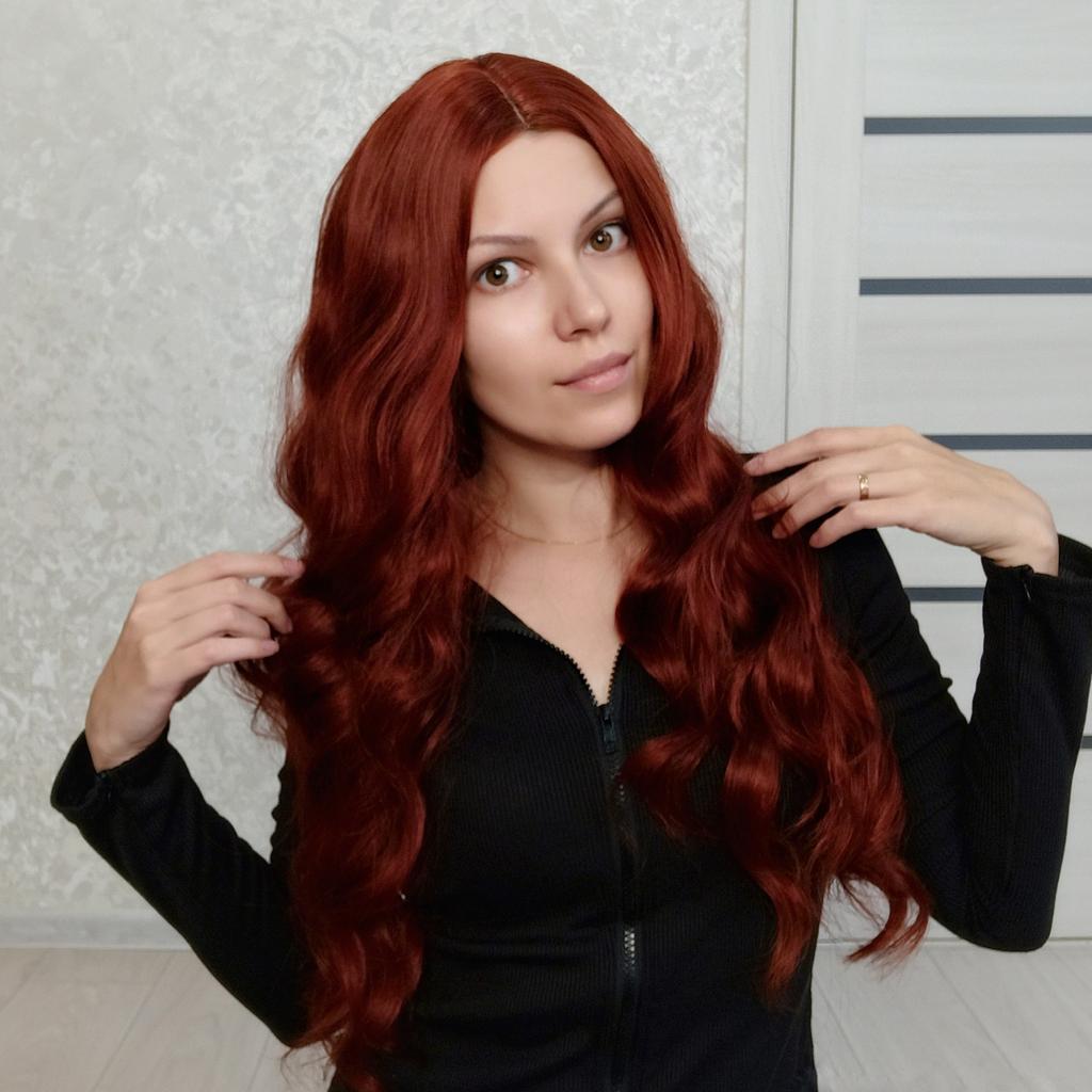 Шикарный парик из синтетических волос! В магазине представлен в ти-ти вариантах оттенков волос. Я заказала рыжий, очень красивый оттенок, тёмный и насыщенный. Волосы густые и очень длинные - более 60 см, надёжно закреплены, не выпадают, качество на высшем уровне. Доставка заняла чуть меньше месяца до почтового отделения, сборную посылку Joom принёс почтальон домой. Упакован парик в зип-пакет и в сеточку для волос, также, в комплект входит капроновая сеточка для своих волос. Качество синтетических волос отличное, они выглядят натурально и естественно, без искусственного блеска. Волосы на макушке крепятся на кружево. В затылочной части волосы сшиты лентами, размер оголовья регулируется. Волосы можно мыть и поддавать термической завивке, сушить волосы лучше естественным путём на воздухе. Пробор волос на сетке, которую нужно обрезать до нужного размера, именно такой вариант смотрится абсолютно естественно, при необходимости, сетку можно приклеивать к коже головы. Размер оголовья регулируется крючками на резинках, есть гребешки для надёжной фиксации. Я довольна покупкой на 100 %, обожаю длинные волосы, давно о них мечтаю, и для меня этот парик - отличная возможность ощутить себя обладательницей шикарных длинных волос. Хочешь перемен? Не спеши менять причёску! Парик - идеальное решение, рекомендую к покупке! Промокод на скидку 562VR0B5LE