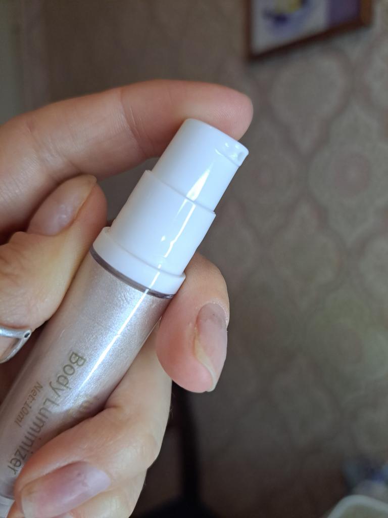Шиммер для лица и тела с дозатором Прекрасный шиммер, блестит красиво, блёстки мелкие, не вульгарные. Держится ну очень хорошо, я бы сказала круто! Я наношу и потом растушевываю или пальчиками или губкой, я вообще люблю такие шимеры, они вроде есть, но не очень бросаются в глаза. Только берите совсем малое количество. Если говорить о лице, то главное правило ─ наносить шиммер только на конкретные зоны. Не стоит использовать его во всей косметике, например краситься блестящими тенями, румянами, и использовать мерцающую помаду. К примеру, если вы хотите сделать акцент на губах, сделайте глаза менее яркими, не используйте шиммерные тени и наоборот, делая акцент на глаза, используйте не броскую помаду. Светлые тона помады визуально увеличивают губы. Продавец предлагает 4 оттенка на выбор. Доставлен в коробочке, запечатанной в слюду, в почтовое отделение за месяц живым треком в сборной посылке. Товар и продавца рекомендую.