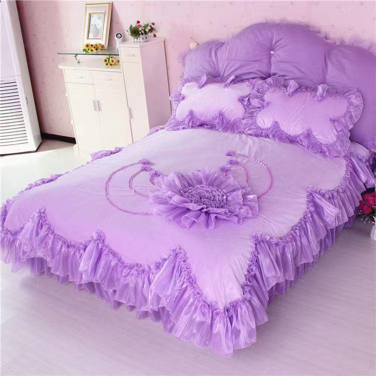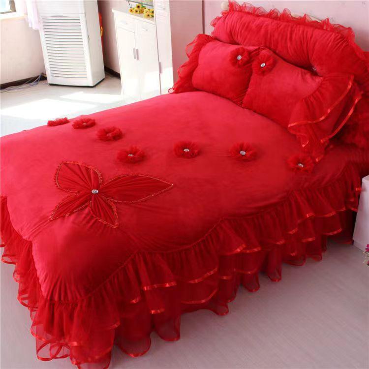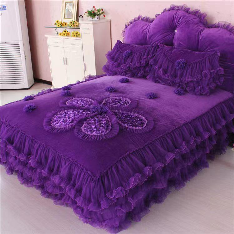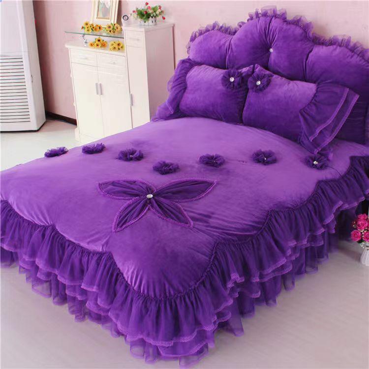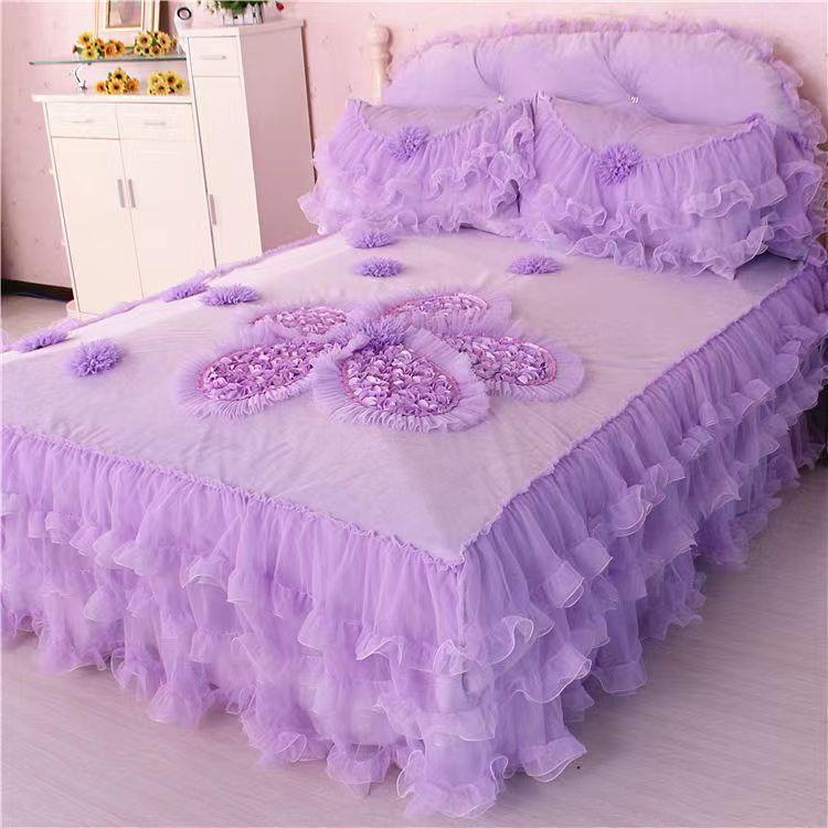 Размер King Size/Queen Size/Twin Size Кружевная утолщенная стеганая юбка-кровать Пододеяльник Наволочка Комплект из четырех предметов Теплая спальня Простое постельное белье Высокое качество