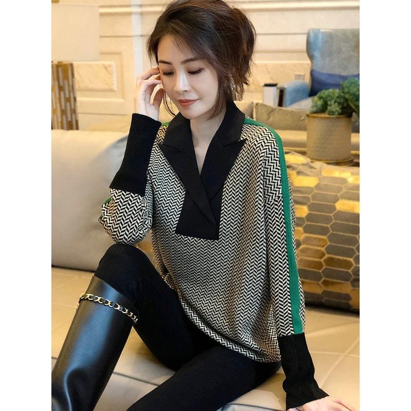 Полосатый пуловер, женский свитер 2022, осень и зима, универсальный вязаный пуловер в западном стиле, свитер — купить товар онлайн с бесплатной доставкой до всему миру!