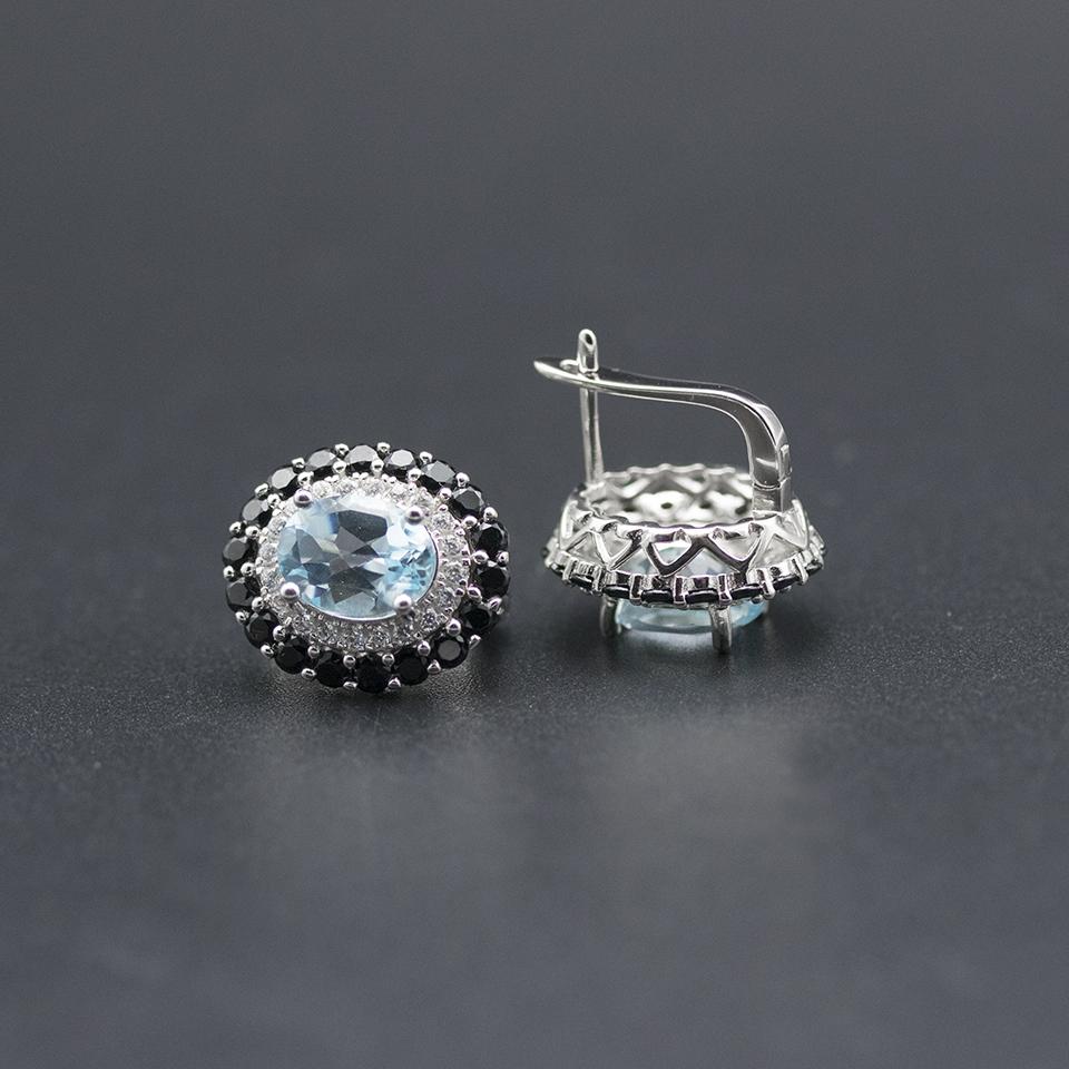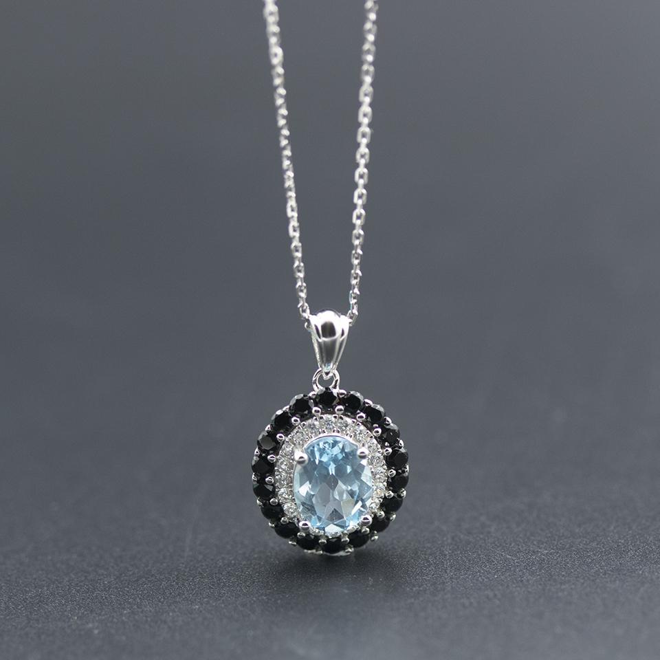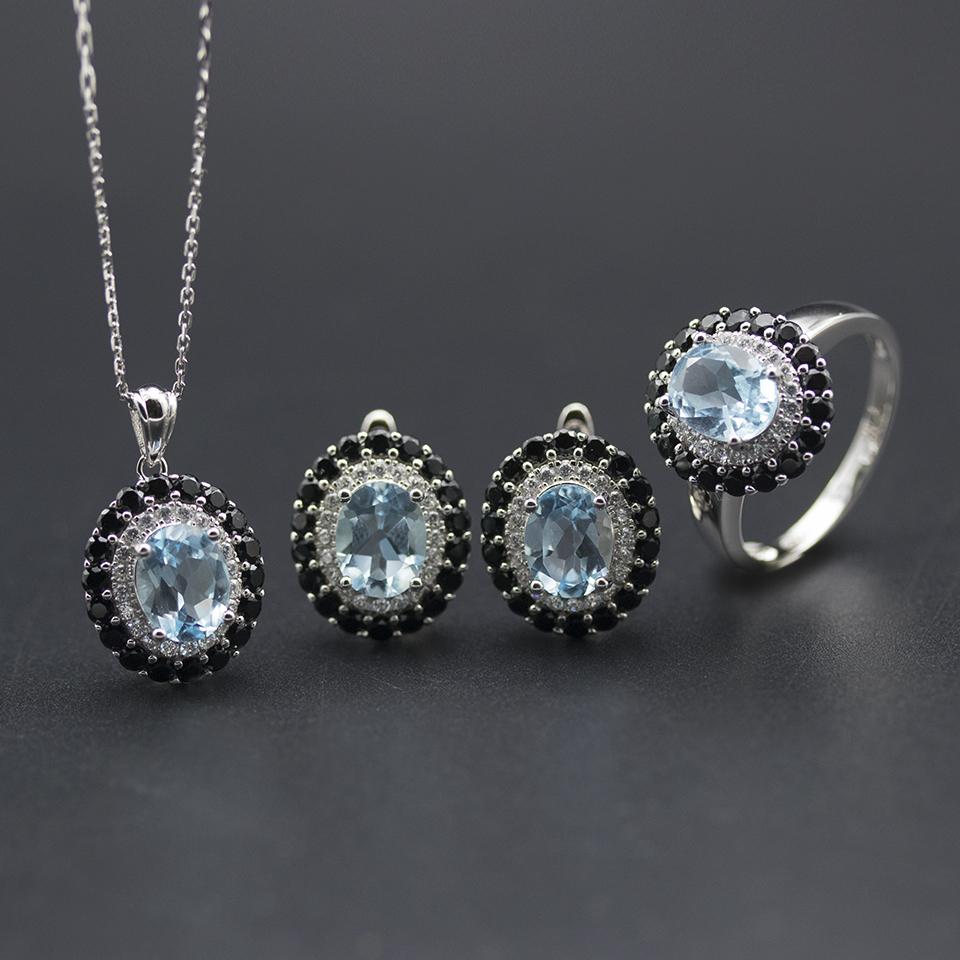 Комплект украшений из 100% натурального голубого топаза, однотонное серебро 925 пробы, овальные 9*7 мм, серьги с драгоценными камнями, подвеска, женские классические серьги