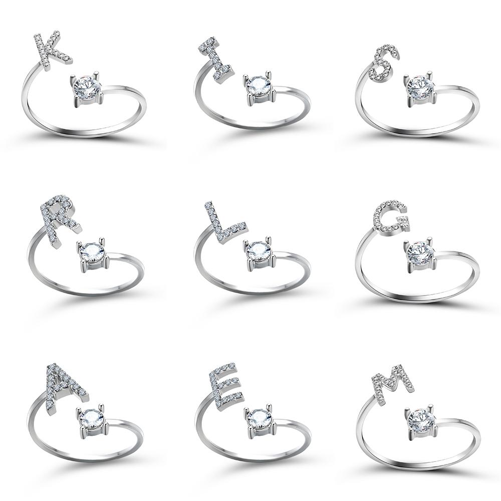 Креативные кольца с буквами A-Z, 26 букв, индивидуальное первоначальное имя, открытые кольца, серебряный цвет, со стразами, кольцо на палец, вечерние ювелирные изделия, подарок