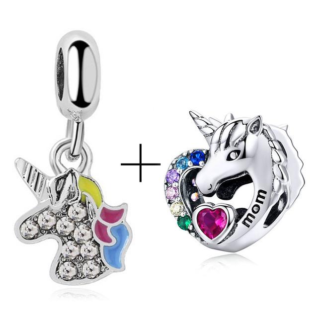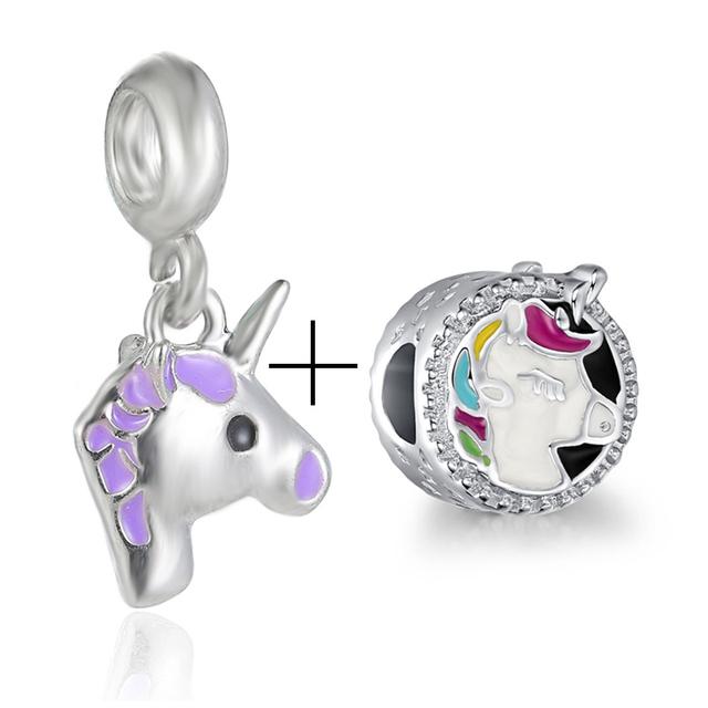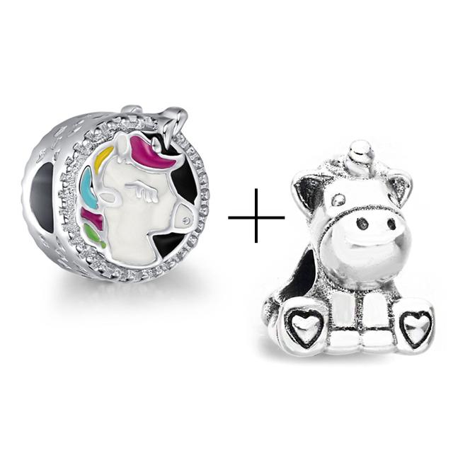 2 шт./лот, новинка 2022, бусины с единорогом в виде животных, подвески, подходят для брендовых браслетов Diy для женщин, изготовление ювелирных изделий в европейском стиле. Купите 1, получите 1 бесплатно