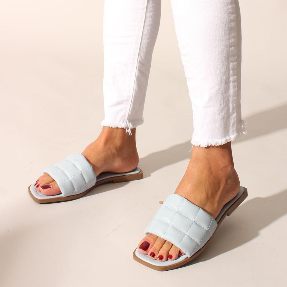 Синие кожаные женские тапочки — купить товар онлайн с бесплатной доставкой до всему миру!