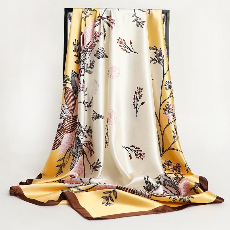 Женский шелковый квадратный шарф, женская бандана, повязка на голову, шаль, атласный платок, женский большой шейный платок-хиджаб, шарфы, пашмина, 2021, повязка на голову