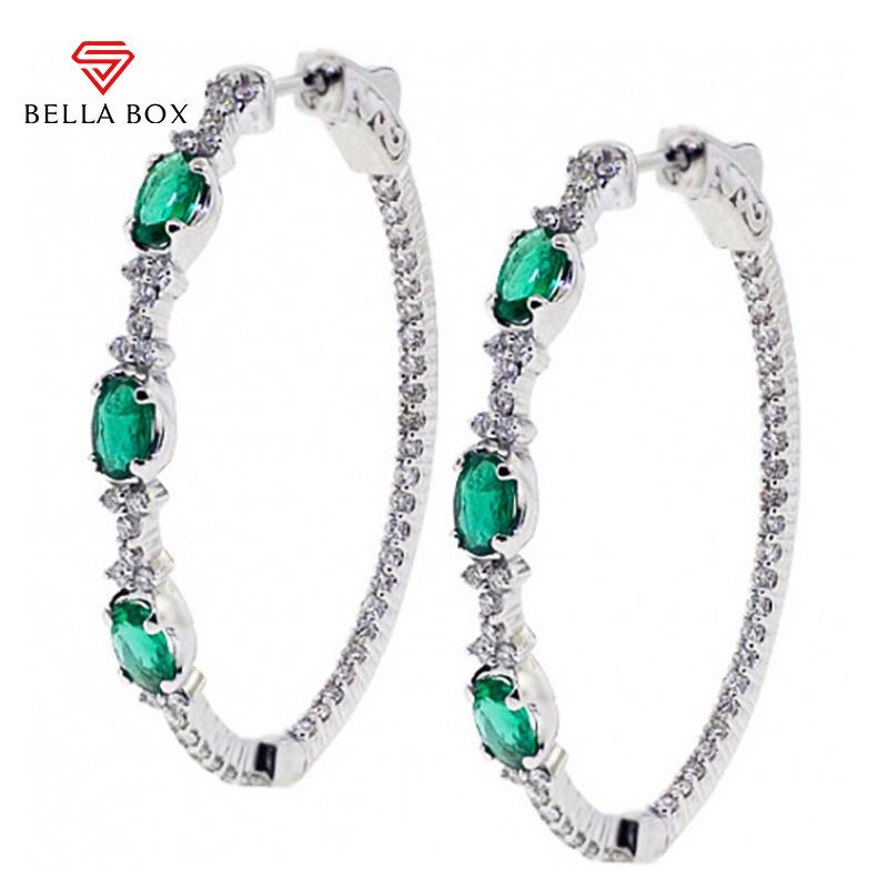 BELLA BOX Винтажные серьги-кольца для женщин с зеленым цирконом, блестящие серьги, подарок на годовщину, женские украшения