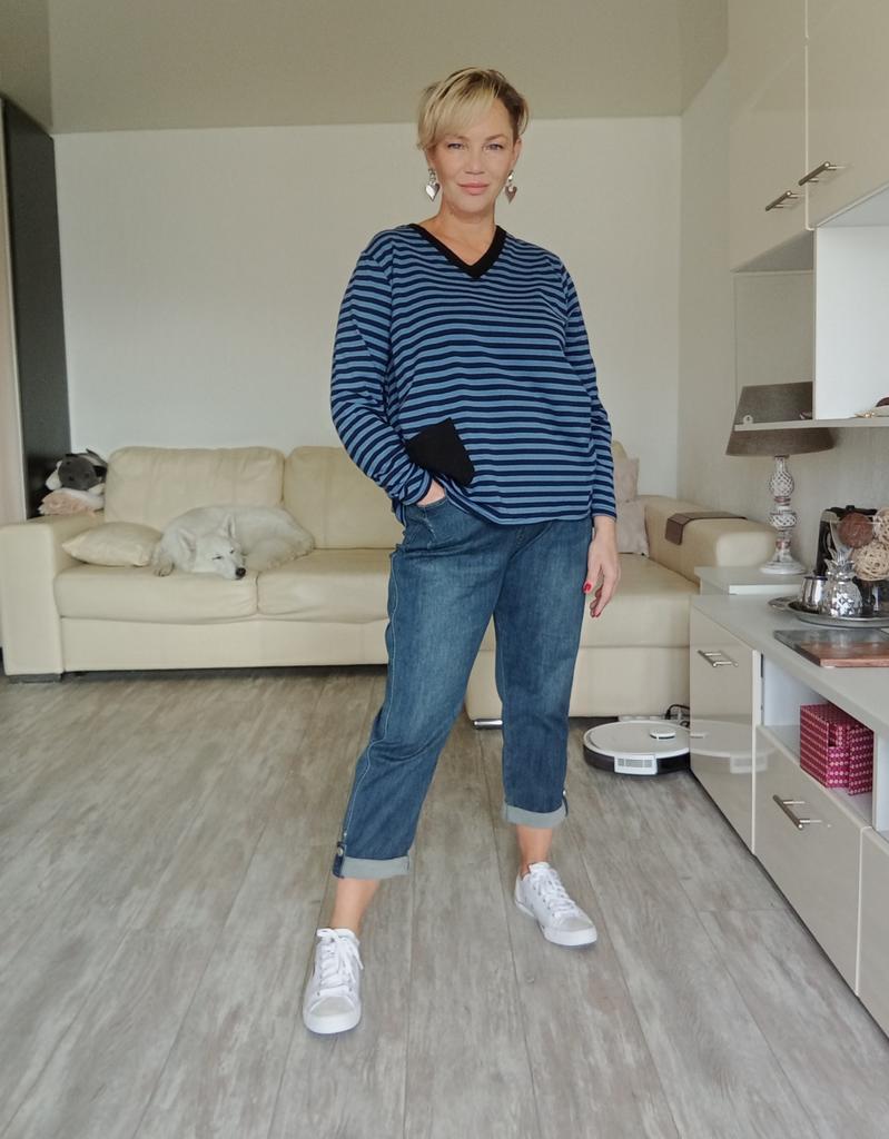 Джинсы от фирмы DIMANAF. Долго думала какой размер взять... В результате долгих раздумий на мои параметры 105/120 я заказала размер 4XL. Тут конечно всё индивидуально, но мне джинсы великоваты. Смело можно было взять на размер меньше, тем более ткань тянется. А так сидят как настоящие бойфренды, очень свободно и в попе и в бёдрах. Но если в процессе носки растянуться, то без ремня упадут. Качество пошива отличное, цвет немного темнее чем на промофото, ткань тонкая, джинсы скорее летние. К сожалению мне пришли джинсы с браком(. Сломана кнопка, которая держит хлястик, который фиксирует подворот штанины. Если штанины отвернуть полностью, то на мой рост 163см длина полноценная. Но мне хотелось бы носить эти джинсы с подворотами. Теперь придётся идти в мастерскую ((( и ещё неизвестно найдут ли ответную часть для заводской кнопки. Написала в СП, жду ответа, но оценку снизила. Всё таки продавец должен как то контролировать качество. СП вернула 30% стоимости заказа.