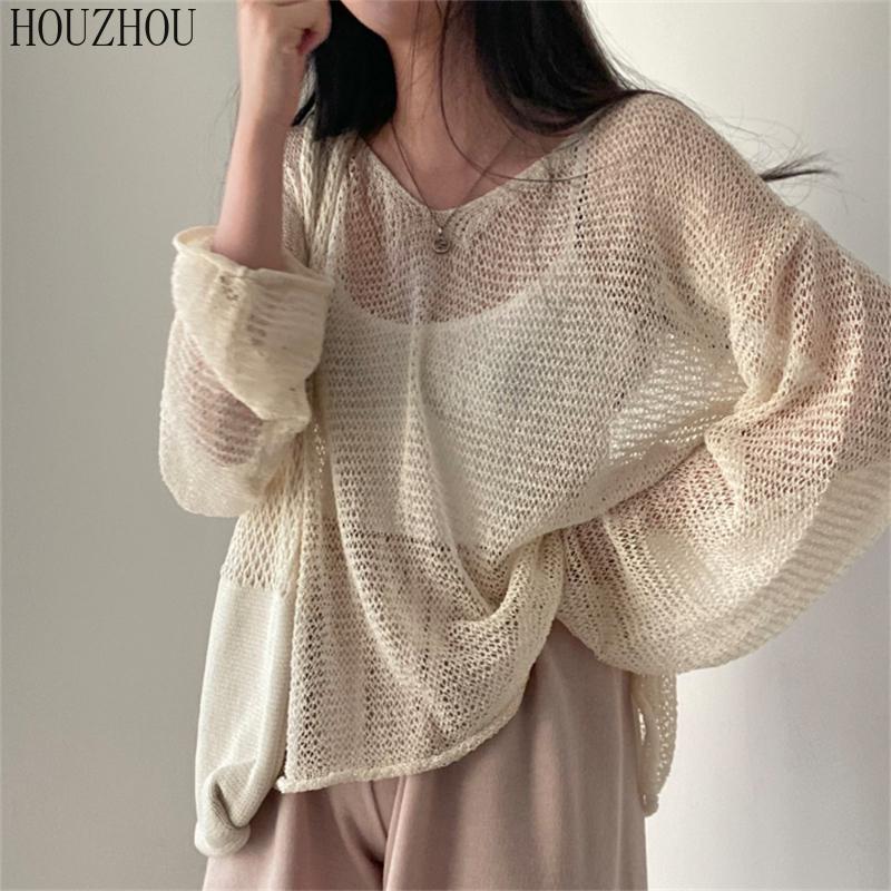 HOUZHOU открытые топы, женские винтажные элегантные повседневные уличные свитера с круглым вырезом, шикарные свободные свитера, трендовые пуловеры — купить товар онлайн с бесплатной доставкой по всему миру!