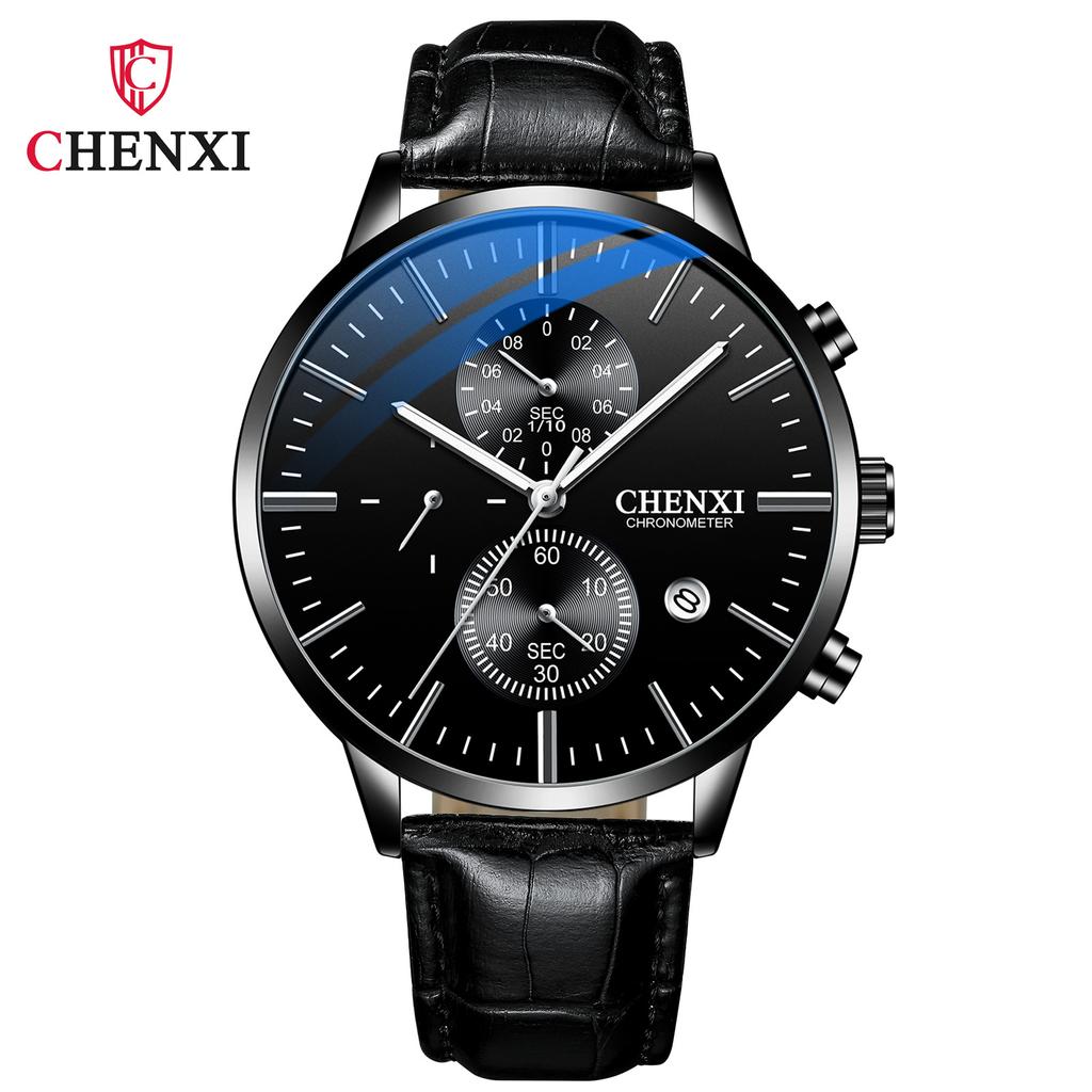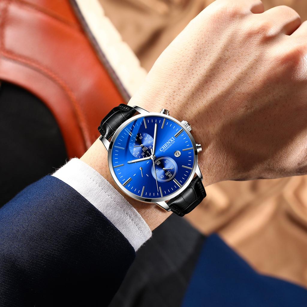 Новые роскошные мужские часы топ-бренда с коробкой, мужские многофункциональные часы с кожаным ремешком и календарем, водонепроницаемые мужские кварцевые часы