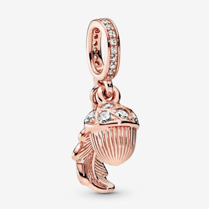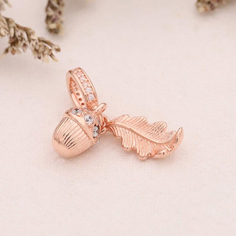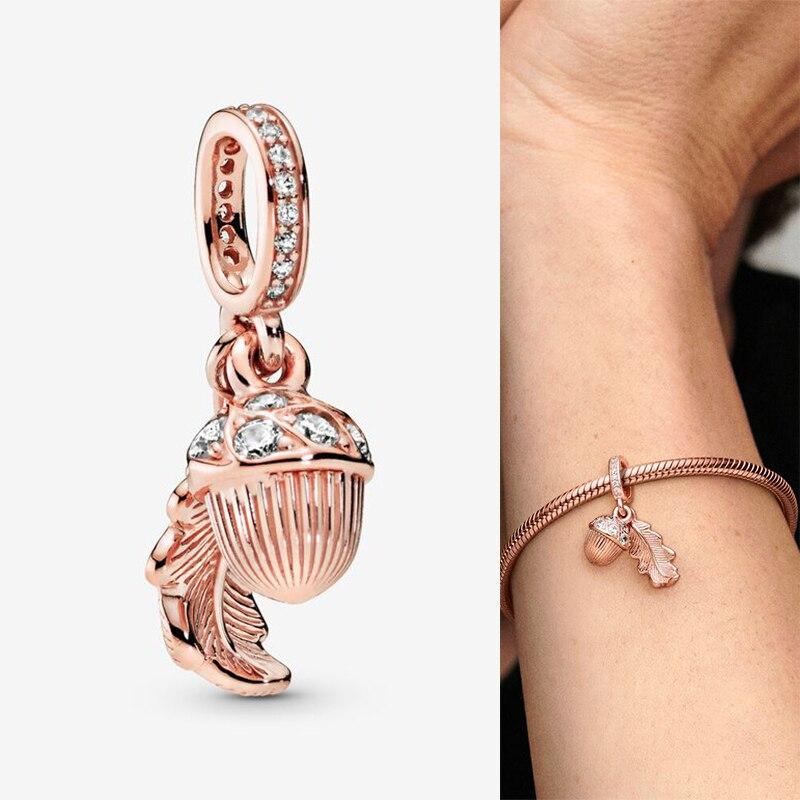 Подвеска из стерлингового серебра 925 пробы из розового золота с желудем и падающими листьями, подходит для модных женщин, браслет и ожерелье, ювелирные изделия своими руками