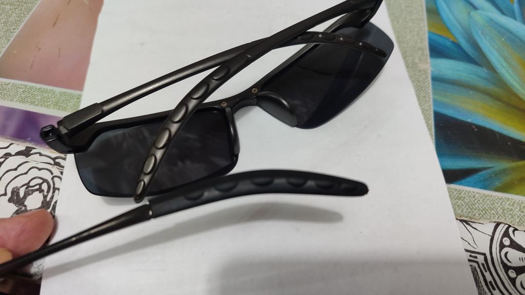Получил через месяц в МД. Очки вообще совсем другие-с фоткой на странице товара и близко не лежали !!!Полностью пластмассовые! Изгиб рамы непонятный !? Края рамы(сами очки) вытянуты вверх ! Единственный плюс очки имеют поляризацию! Ну я считаю только на рыбалке использовать !? На фото для сравнения-нижние очки это те,которые должны быть!Поляризация видна на обеих очках! Видим ,что нижние фотохромные! То-есть в темноте линзы светлеют, а на солнце темнеют.И рама должна быть как на нижних металлическая -с резиновыми наконечниками на дужках!!! А продавец выслал пластиковую дешёвку !!!