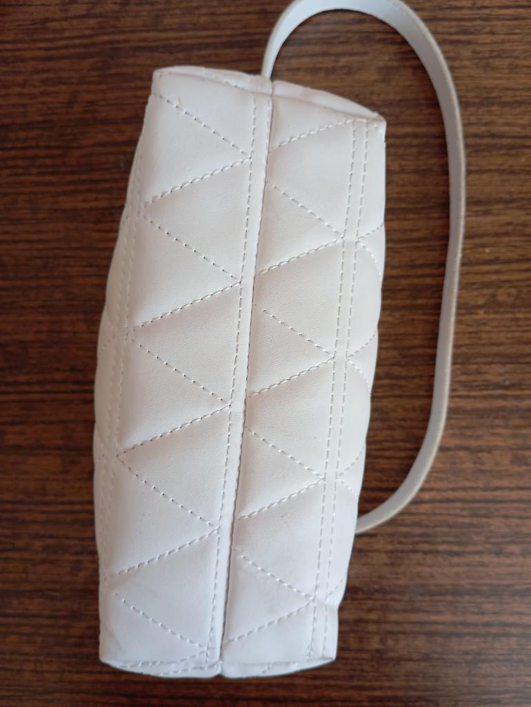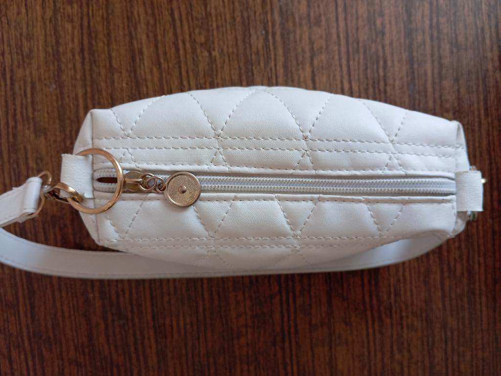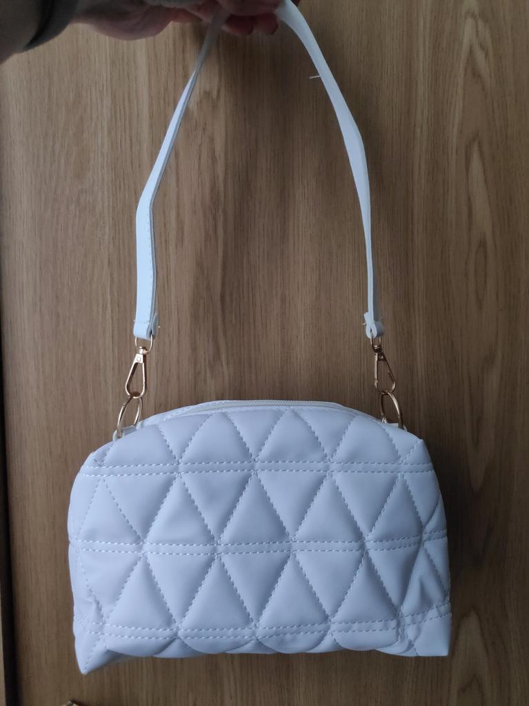 Всем привет. Получила сумочку. Что сказать? Качество, вроде бы как, не плохое. Выполненна аккуратно, всё ровно. Замочек работает отлично. Ручка короткая, можно заменить при желании, на другую. Запаха химии, не было. Цвет чисто белый, красивый. В меру вместительная. Но мои, предпочтения в сумках, совсем не то, что люблю. Карманов нет вообще, ни с наружи, ни внутри, только по этой причине фасончик не мой. Отдала её дочери, ей нравится, устраивает всё. А так, кто любит такие сумочки, приобретайте. Спасибо джум за товар. Желаю всем удачных покупок и быстрой доставки. Всем пока и до скорого.