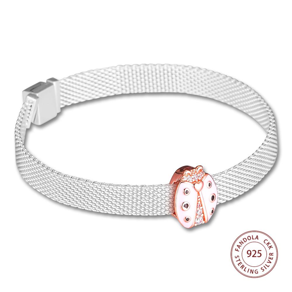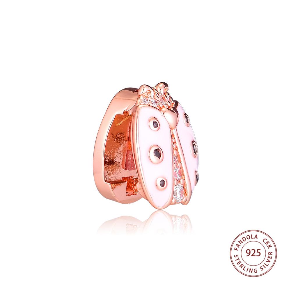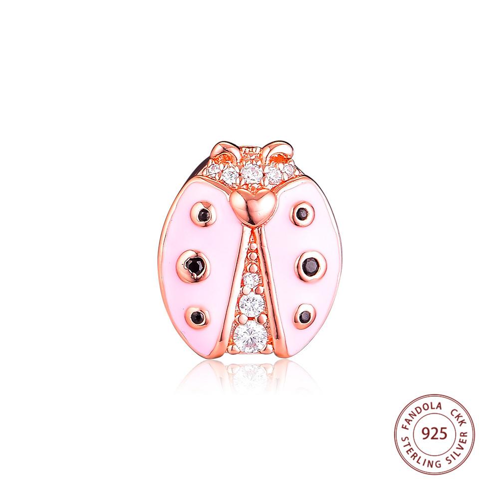 Аутентичные бусины из стерлингового серебра 925 пробы с розовыми отражениями розовых божьих коровок, подходят для оригинального браслета для женщин, ювелирные изделия в подарок