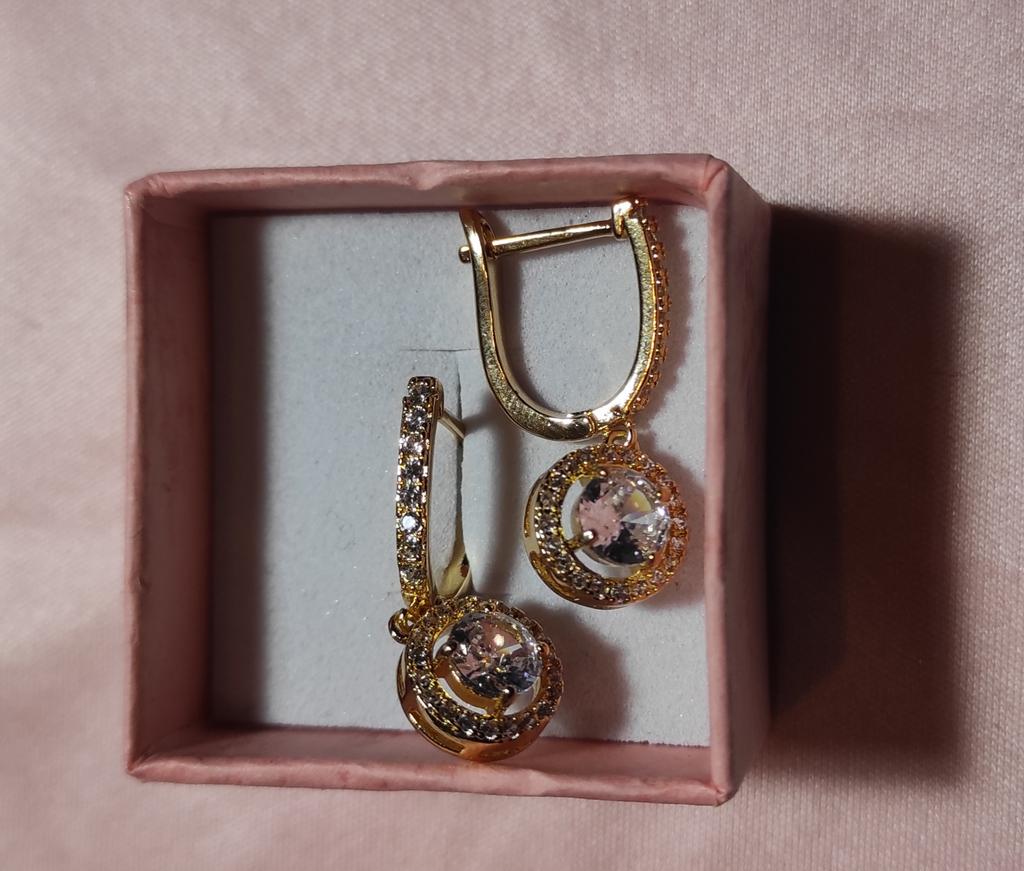 Получение на почте. Очень нежные и изящные серьги. Думала, что будут чуть крупнее, но не критично. Выглядят богато. Мне понравились. Брала под кольцо, купленное у другого продавца, а получился по сути набор. Рекомендую всем к заказу.