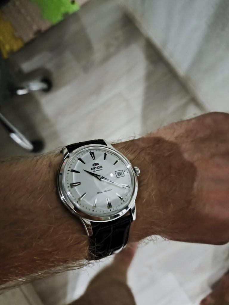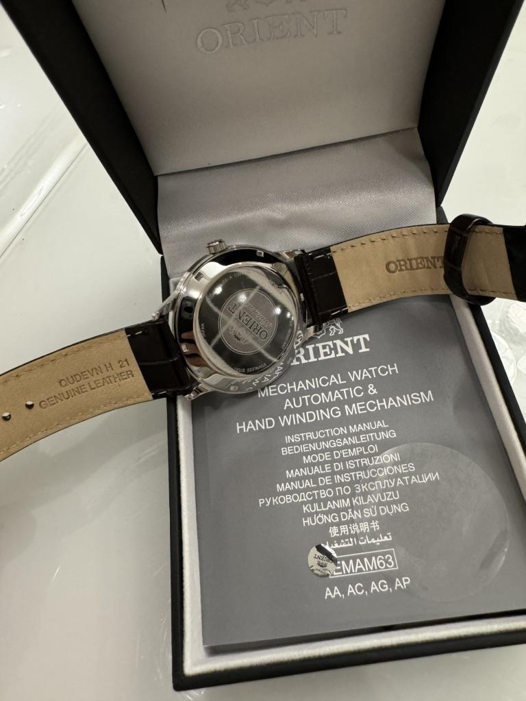 Корпус из нержавеющей стали в сочетании с темно-коричневым кожаным ремешком подчеркивает нарядный вид часов, делая их универсальным аксессуаром для любого изысканного гардероба.. Эти часы оснащены надежным автоматическим механизмом Orient Caliber F6724 с автоподзаводом и обладают большим запасом хода до 40 часов, гарантируя стабильную и точную работу в течение всего дня.. Наличие указателя даты добавляет практичности, а завинчивающаяся задняя крышка позволяет заглянуть в сложную внутреннюю работу механизма, что понравится любителям часов, которые восхищаются механическим мастерством.
