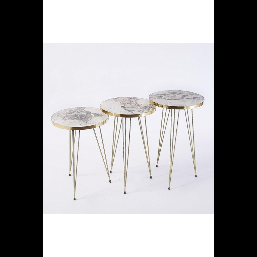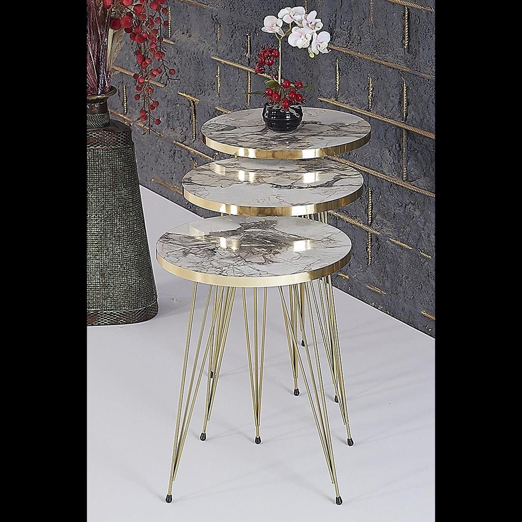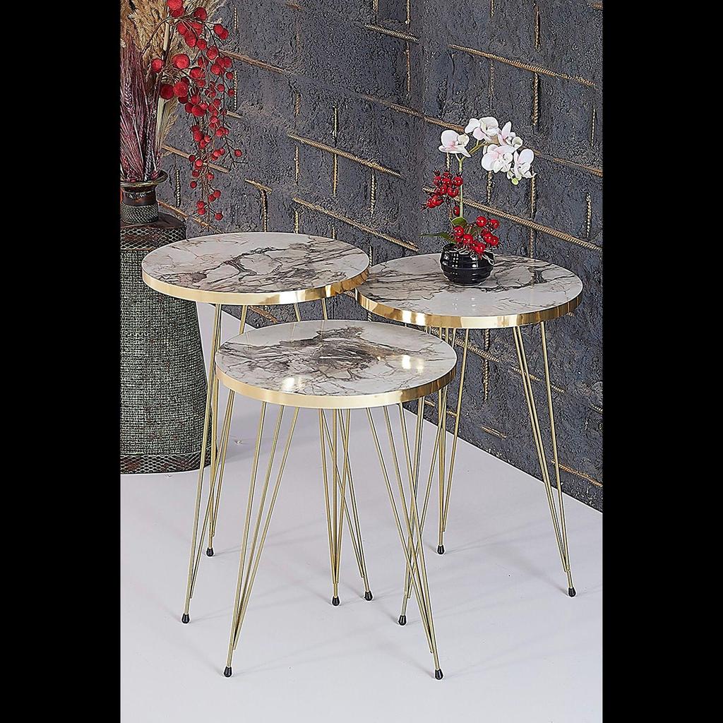 Декор Zigon Журнальный столик Набор Круглый Эфес Мрамор Узорчатая Золотая Металлическая Нога