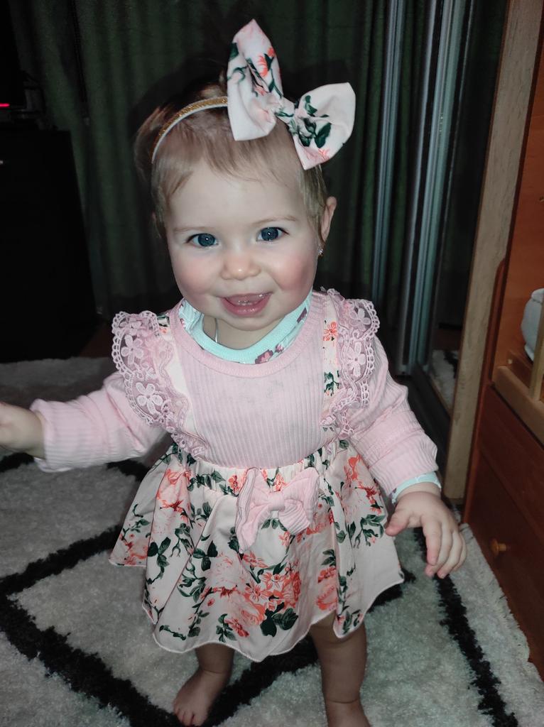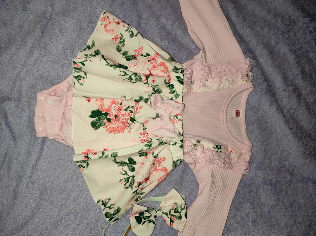 Получила наконец-то платье своей принцессе. Шло очень долго. Из общего заказа, где было около 15 наименований, пришло самым последним. Месяц и неделя (хотя это не предел для Джума), но проблема состояла в том, что он не прослеживался. В любом случае дошел и слава Богу)) все целое. Ничего не торчит. Нам 11 месяцев. Великовато в рукавах. Внизу за счёт присобранной резинки на попе ещё может тянуться в размере. Наш рост 80см. Платье красивое, нарядное, удобное. Моей моднице понравилось) хоть и повязки носим от силы секунд 5 но фото сделать успела 😅. Сама резиночка на голове вроде как не должна давить. Спасибо джуму. Рекомендую❤️