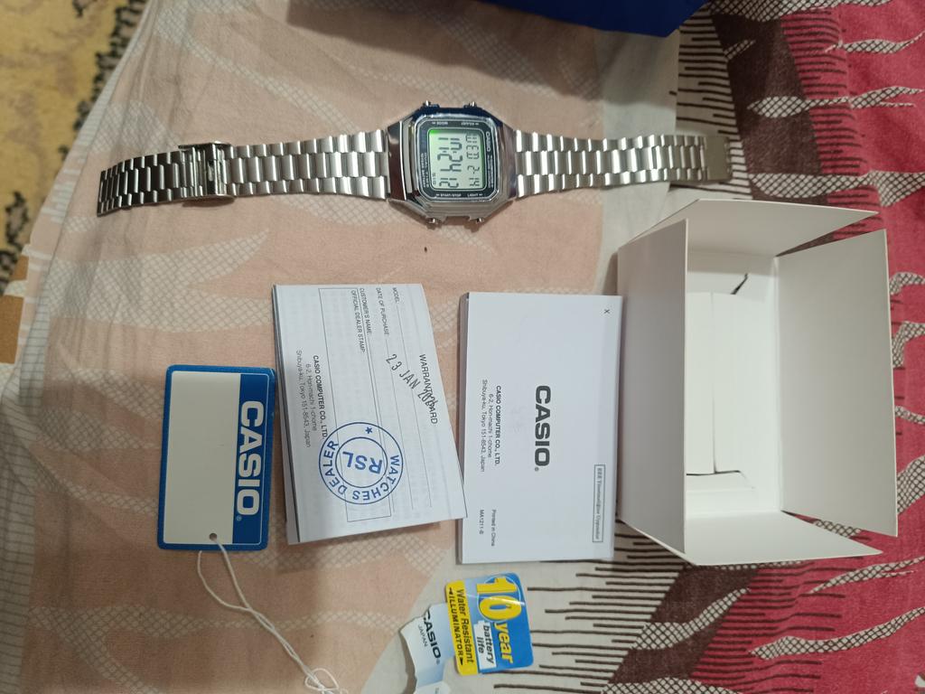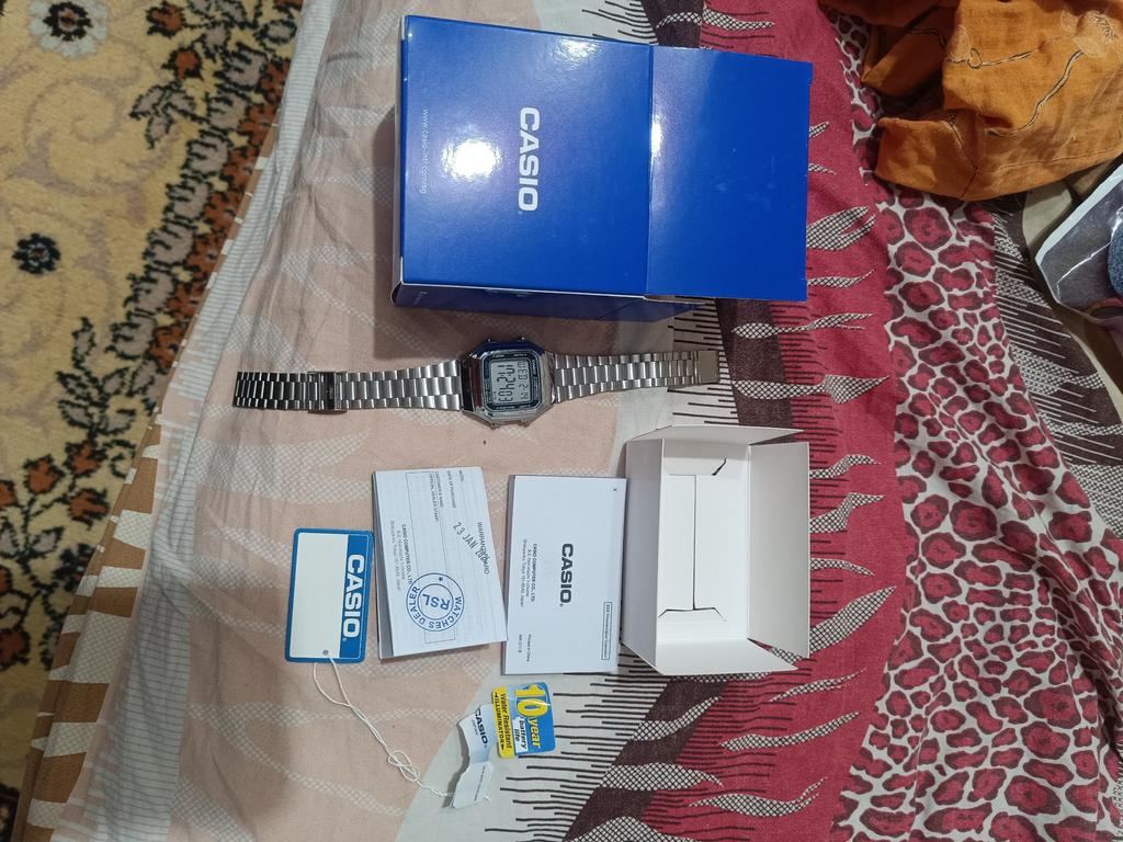 Часы пришли в Молдову почти за месяц. Сказать насчет качества нечего, потому что и так все ясно, т.к это оригинальная продукция, нареканий нет. Комплект: Оригинальная коробка (не подарочная), инструкция, "гарантия", бирка. Ремешок настраивается с лёгкостью. На фото кажутся больше чем в жизни. Часы легкие, ремешок тонкий, матовый, подсветка отличная, в сумерках и ночью весь экран видно. Из функций: двойное время, секундомер, будильник, ежечасный сигнал и тд.на самих часах имеется защитная транспортировочная пленка ( на первое время я ее по бокам отрезал дабы не царапать экран, далее приобрету защитную пленку, не плохо если бы в комплекте была бы, на АлиЭкспресс кстати дают в подарок, это так на заметку, т.к экран тут пластик либо акрил). Батарейка уже стоит заводская, расчет на 10 и более лет, так что менять не прийдётся. Настроить часы можно по инструкции с ютуба. Правда один нюанс самому джуму за колебание цен. Т.к часы я заказал за 668.80лей по 10% скидке. На данную модель скидка более 10% не работала, на другие модели можно было применить и 17% и тд. Данные часы из Сингапура.