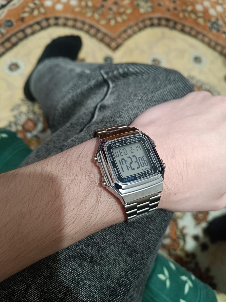 Приятные часики за свои деньги. Выглядят по канонам, винтажненько. Сейчас классические электронные часы снова в моде, можно поностальгировать. Но исполнение бюджетное, корпус пластик, браслет цепляет волосы. Размер компактный. Короче, бюджетные Casio - есть бюджетные Casio. Не ждите чудес. Мой обзор, в котором присутствуют эти часы: https://youtu.be/M-jdy3mJe4w?si=oRU_x3xS6BY1NQ_3 На фото: QR-коды - приглашения на мои каналы Ютуб и Телеграм. Извините за такую наглую саморекламу. Просто площадка требует, чтобы было хотя бы одно фото. А у меня этих часов уже нет, подарил. Поэтому решил, пусть будет так.