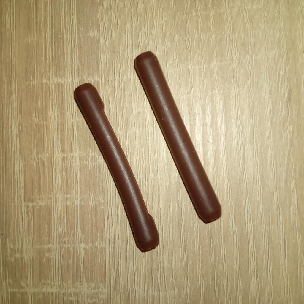 Товар качественный, хорошо тянется и легко гнётся, без посторонних запахов. Но на совсем прямые душки очков, я на свои не смогла натянуть.