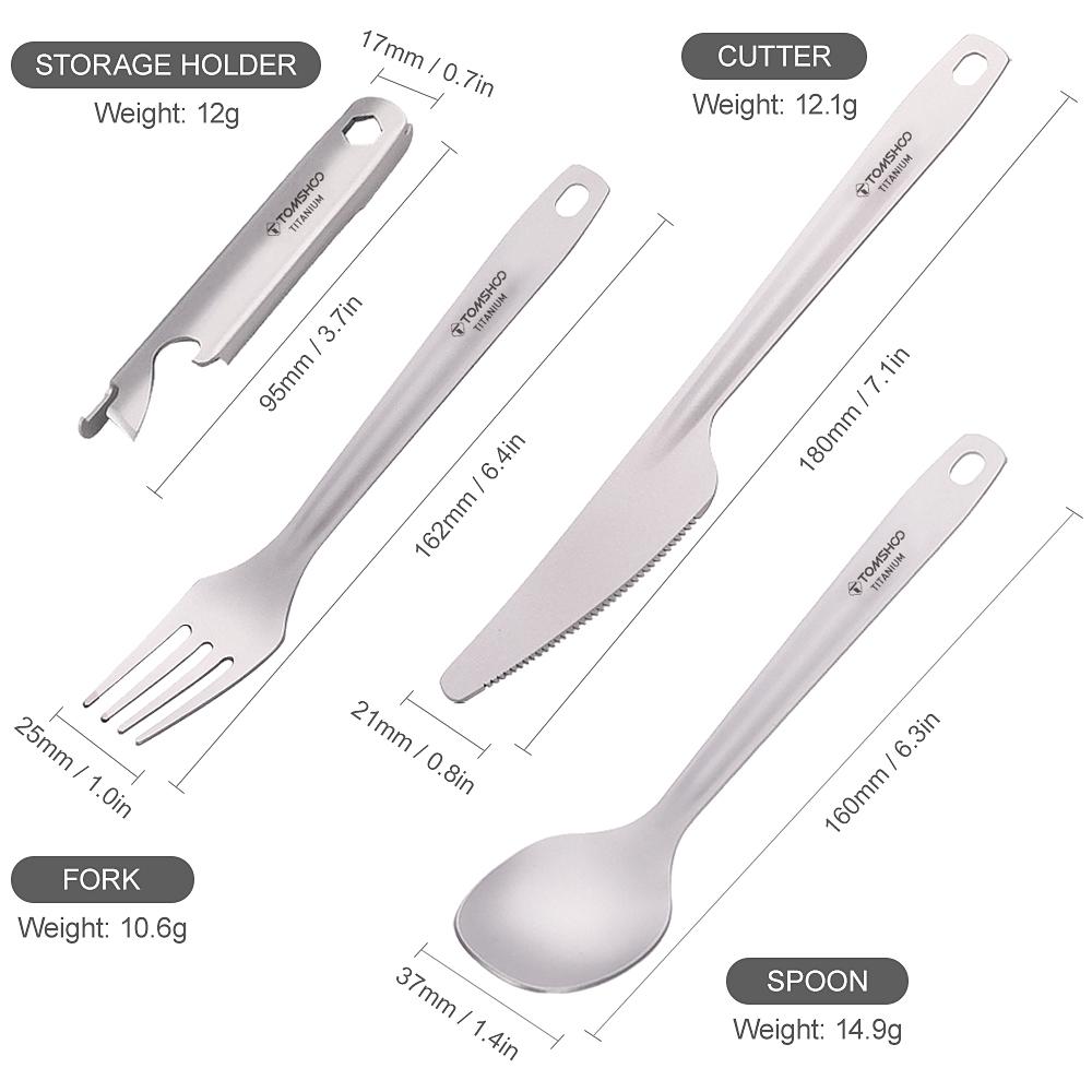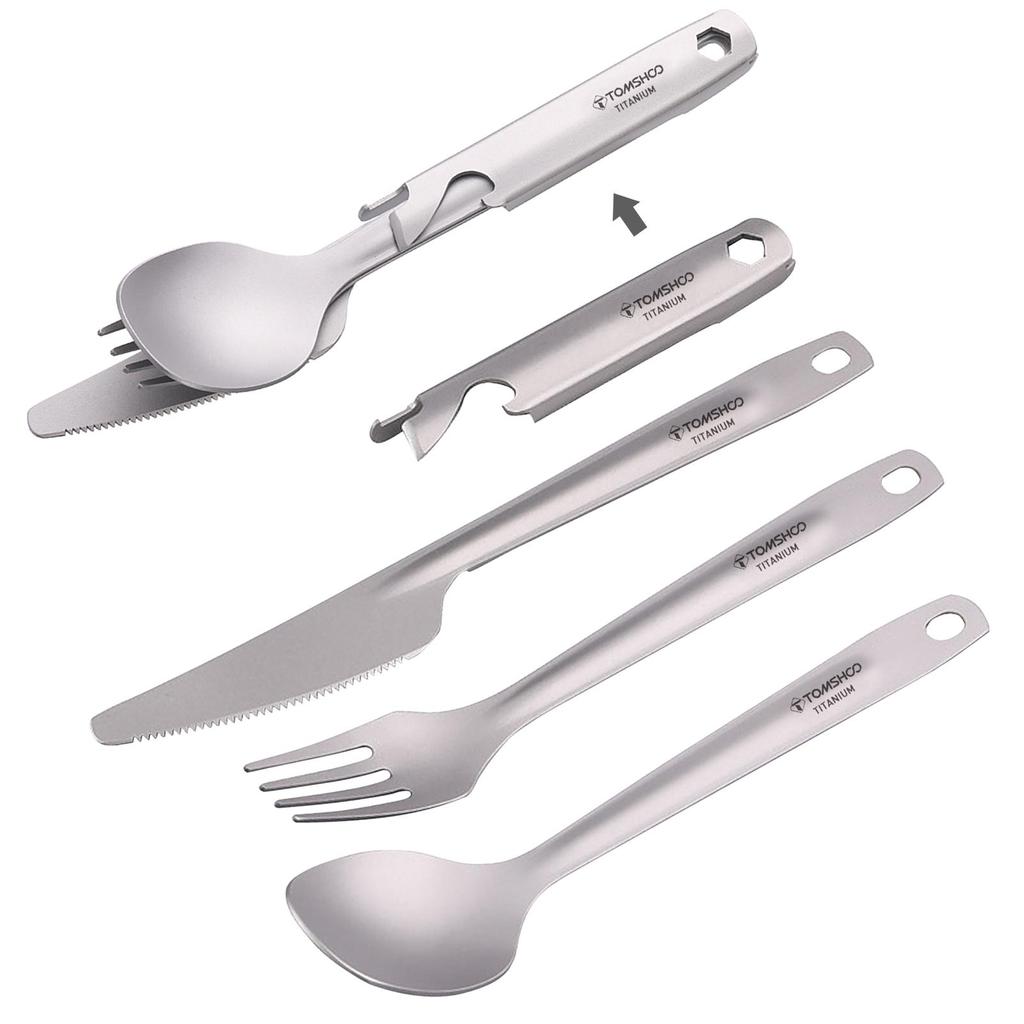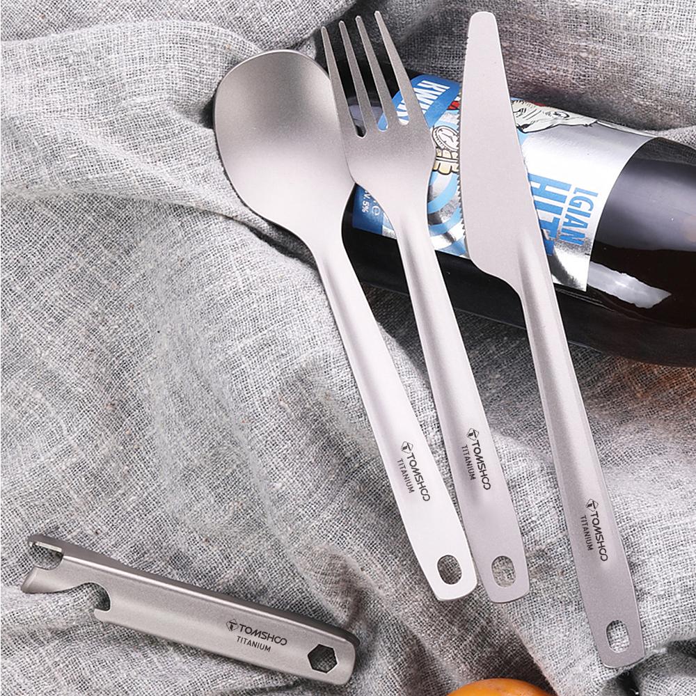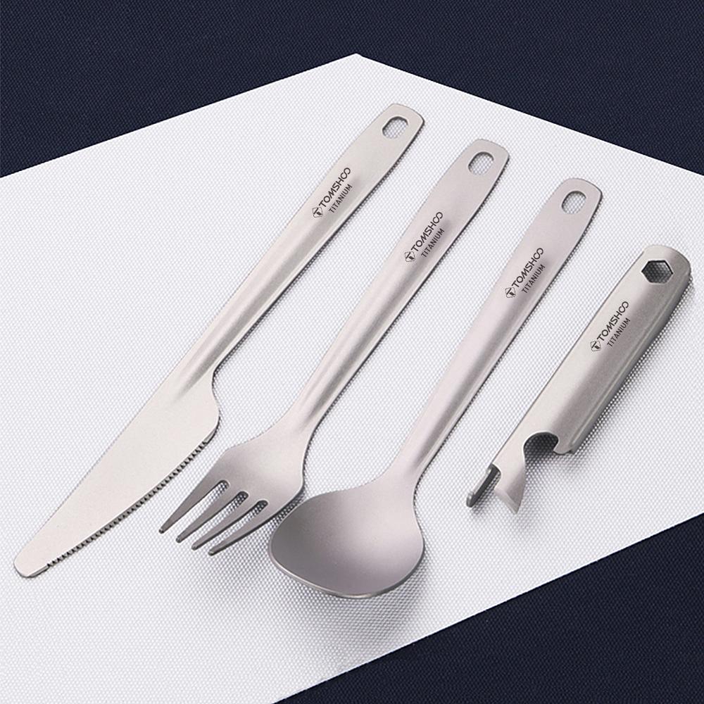TOMSHOO 4-в-1 титановый набор столовых приборов, легкая обеденная ложка, вилка, резак с многофункциональным держателем для хранения, открывалка для бутылок