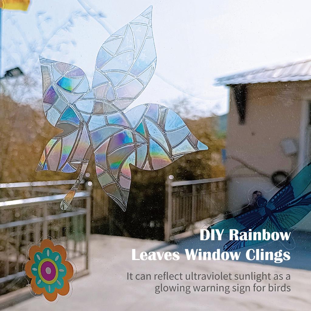 3 листа, противоударные наклейки на окна, сделай сам, радужные листья, тема, окно цепляется, съемное стекло из ПВХ