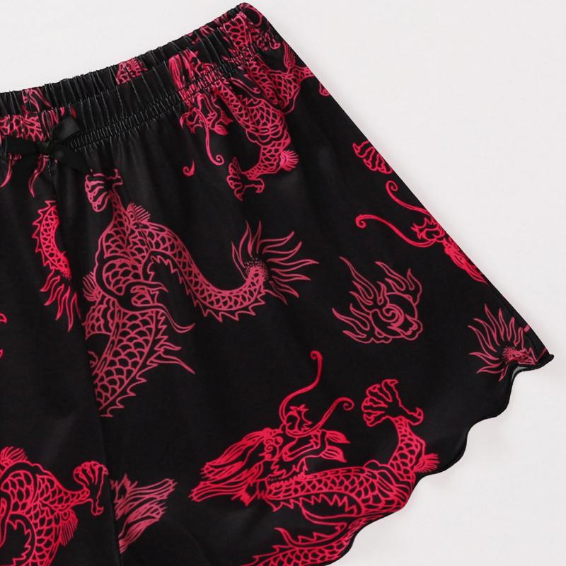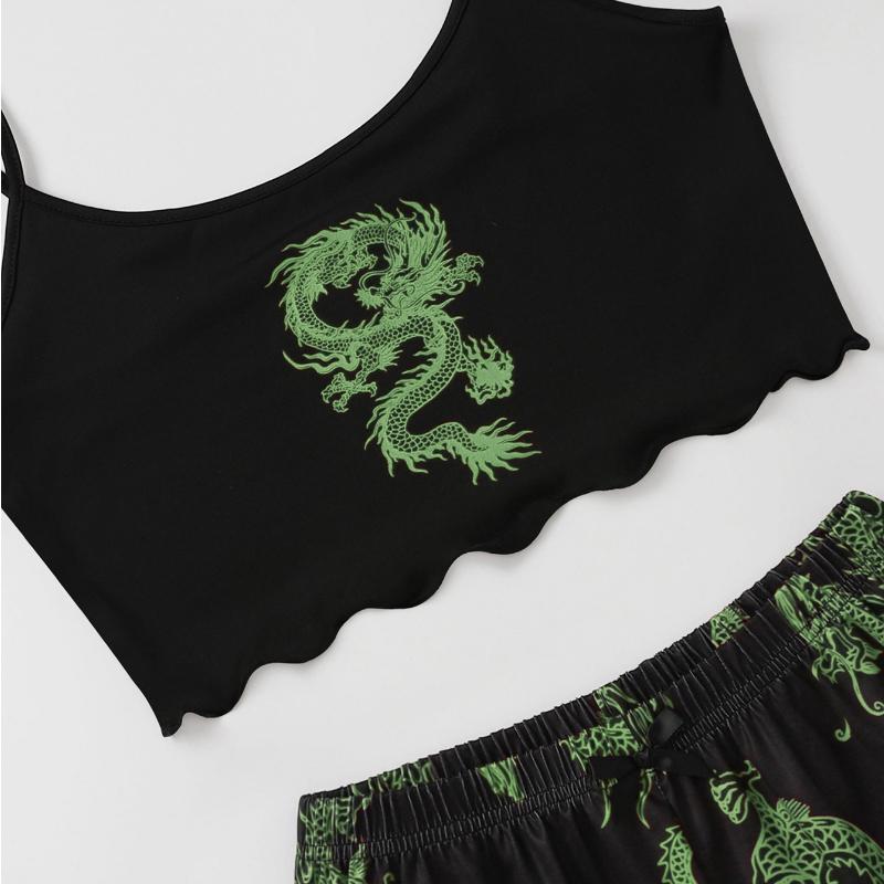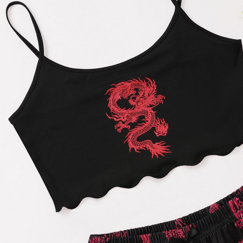 Пижама с принтом дракона, женская пижама в готическом стиле, летняя одежда для сна Harajuku, повседневная черная короткая ночная рубашка большого размера, комплект домашней одежды