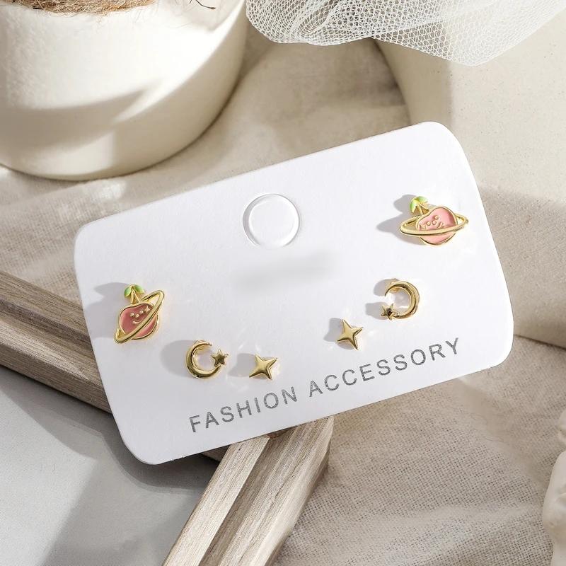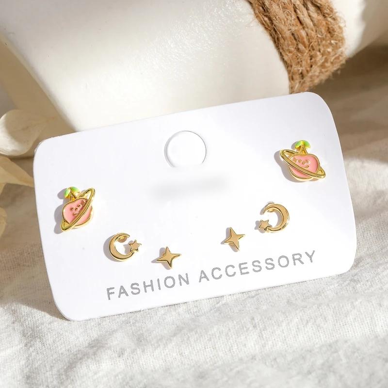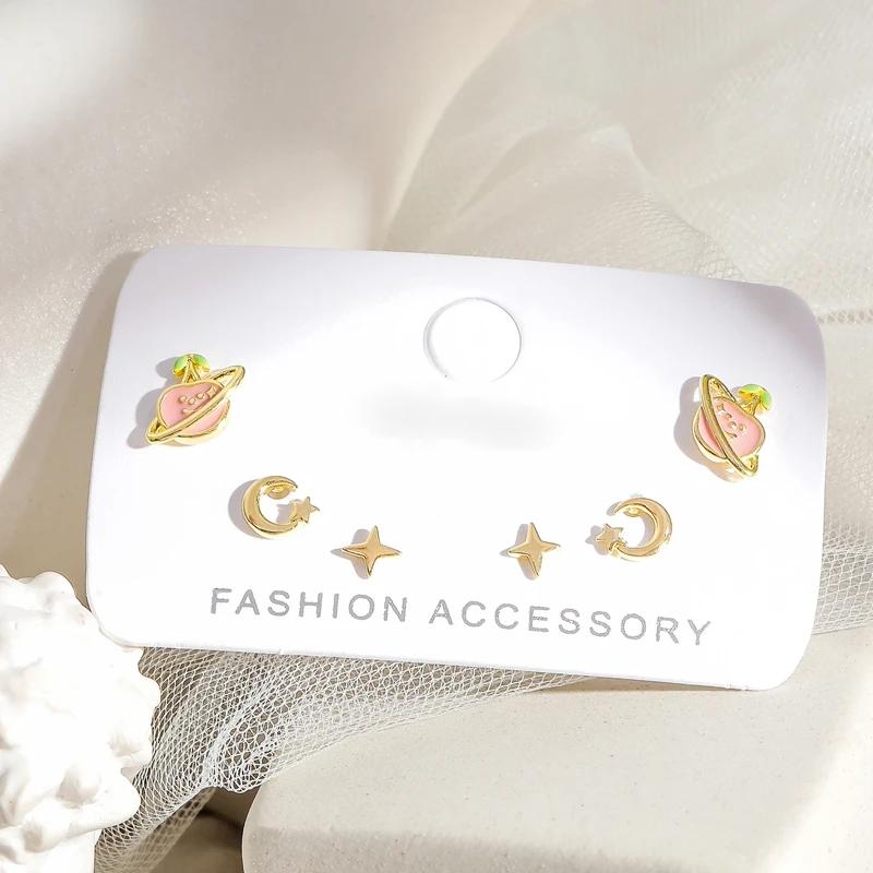 Набор серег «Фантастическая Вселенная» с луной и звездой для женщин и девочек, маленькие серьги из 6 предметов, подарочные вечерние украшения