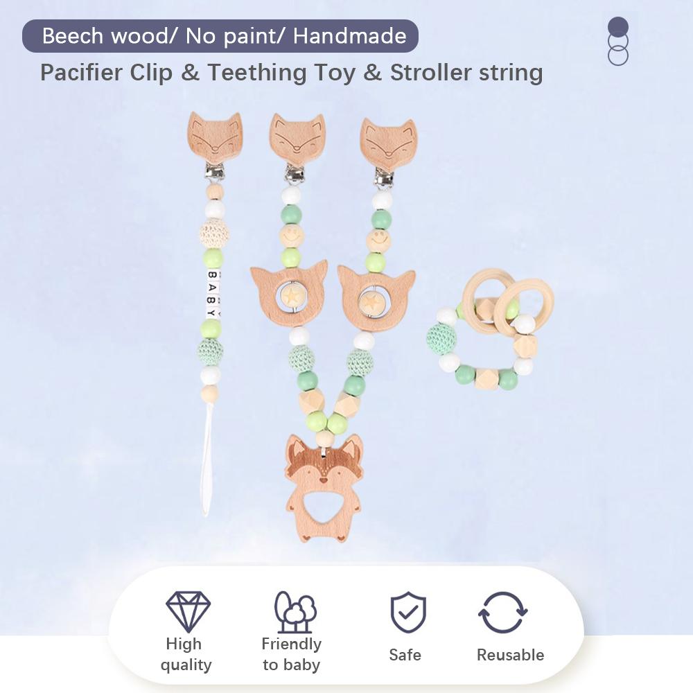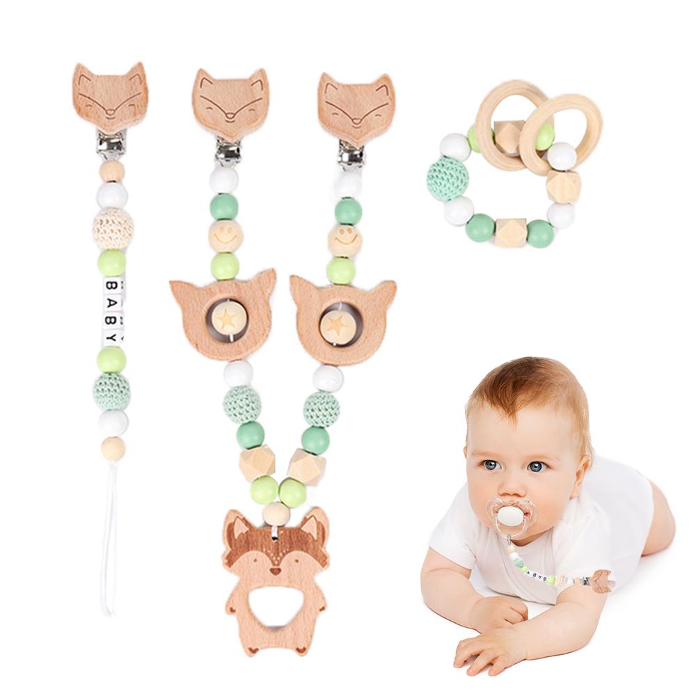 Зажим для детской соски, деревянные игрушки для прорезывания зубов с бисером, милый мультяшный успокаивающий прорезыватель, ручной браслет, коляска