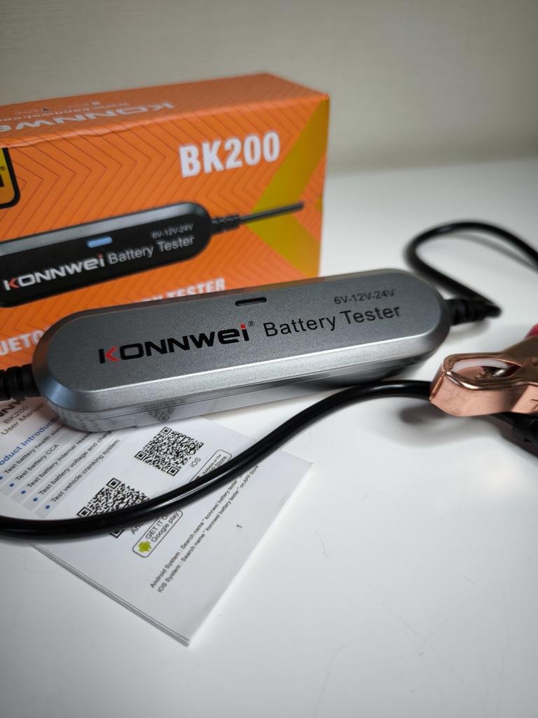 Bluetooth тестер АКБ KONNWEI Очень удобный, компактный. С его помощью можно проверить состояние аккумулятора, тест заряда, напряжения. Быстро коннетится с Android и выводит данные на экран за несколько секунд. Вам всего лишь нужно скачать приложение по QR коду нанесенному на само устройство. Для iOS тоже предусмотрено программное обеспечение. Поддерживает большое количество языков, в том числе и русский. Когда вы зажмете клемы, на устройстве загорится индикатор, сначала красным, потом синим светом. Это означает что вы успешно подключились. Размер устройства 12,5*3,5*2,2 Длина продов 26 см Длина зажимов 7,5 см В комплекте есть инструкция. Рекомендую 🤗