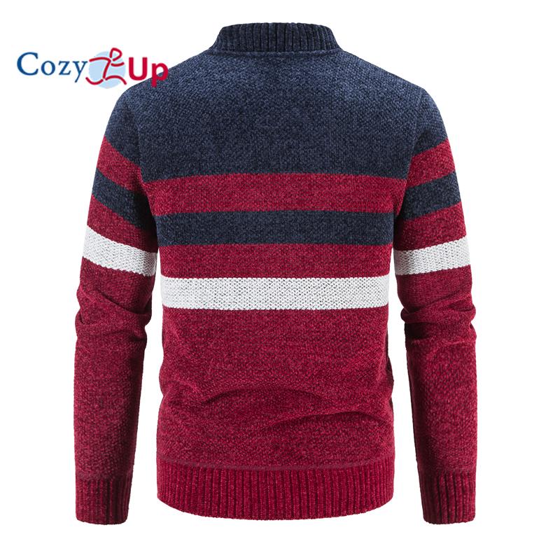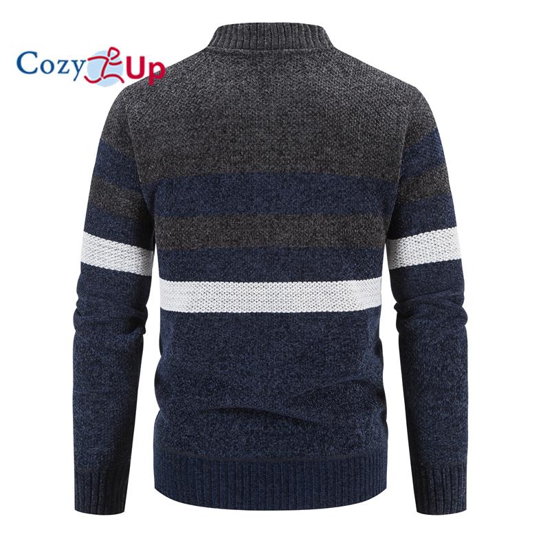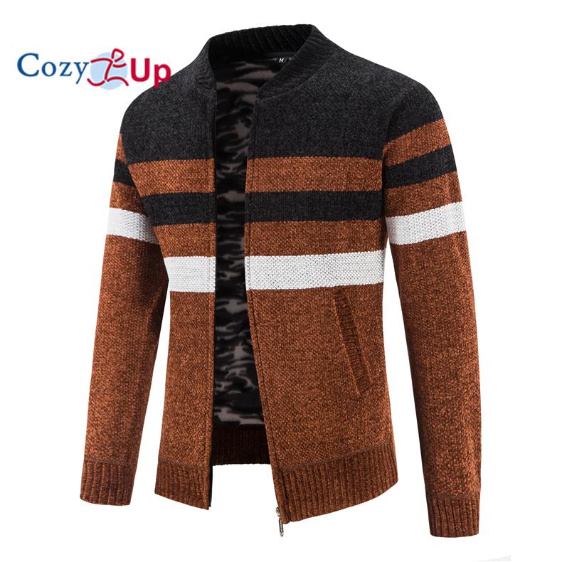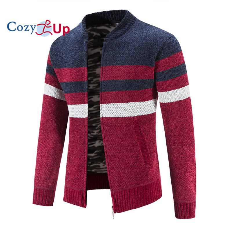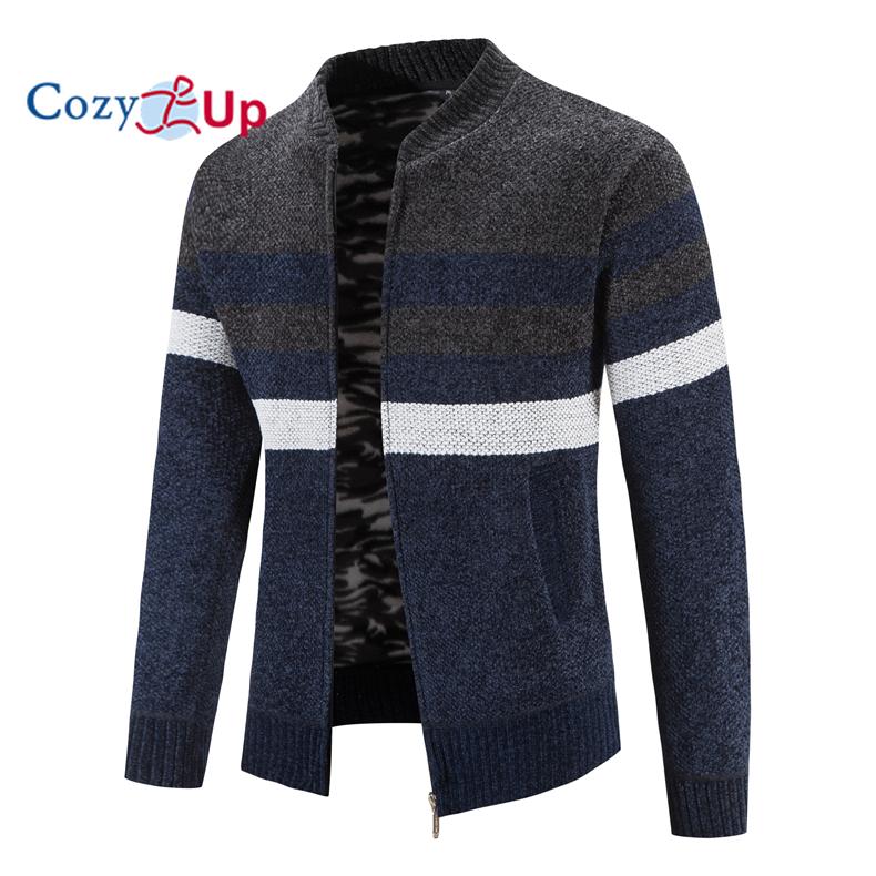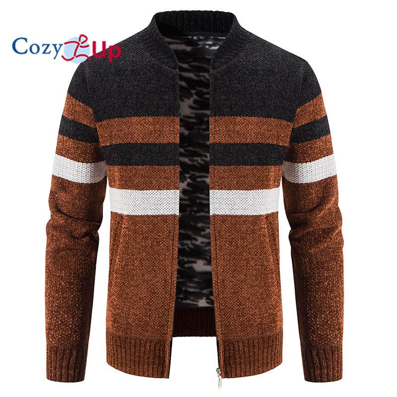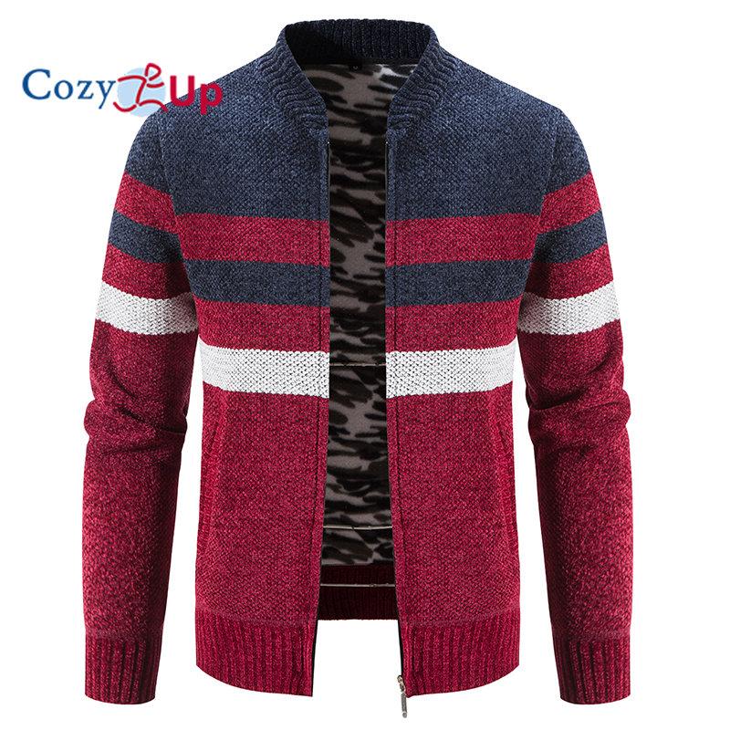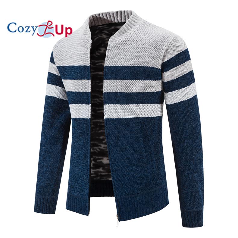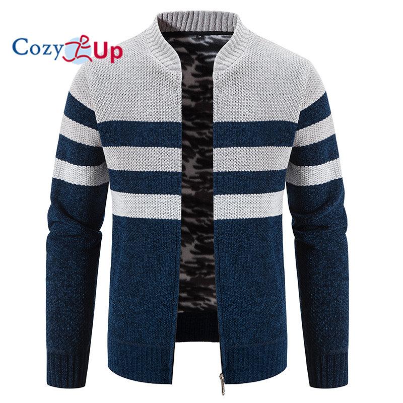 Cozy Up Мужской кардиган, свитер, ребристая вязка, молния, вязаный цветной воротник, воротник-стойка, теплые штаны, современная повседневная одежда