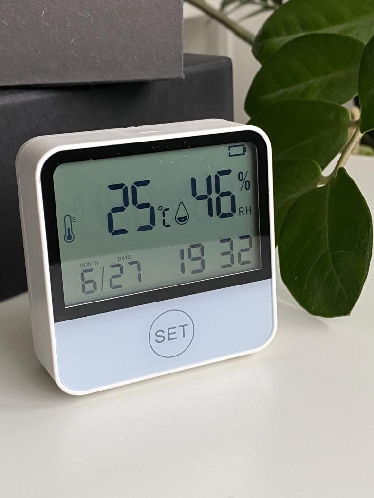Отличный девайс для дома. Помимо того, что этот прибор измерит влажность, температуру воздуха, он ещё может работать как часы, будильник и календарь. Все данные отображаются в приложении Tuya, это очень удобно. Работает от батареек АА, корпус пластиковый, ЖК экран. Сделан аккуратно. В комплекте есть инструкция на английском языке. Доставка около трёх недель до Санкт-Петербурга.