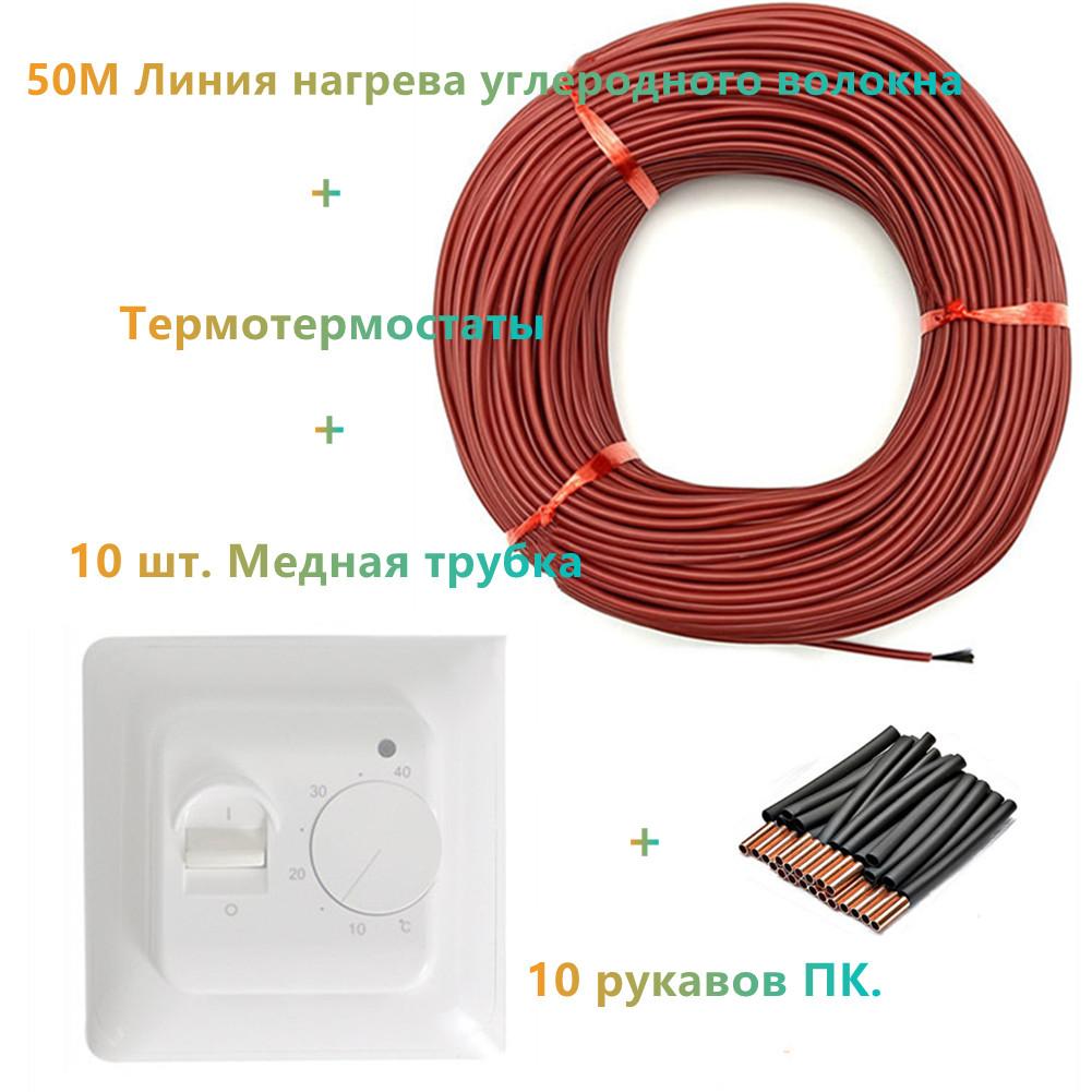 Нагревательный кабель длиной 50 м и термостат в сочетании с подогревом пола из углеродного волокна 12K Дальнее инфракрасное отопление с комплектами ручных термостатов