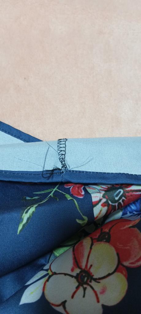 Ужасное платье. Синие платье прошили чёрными нитками которые торчат из всех швов. Платье в каких-то пятнах. На ощупь тонкая, хлипкая синтетика. У моего платья на спине затяжка. Стирать его страшно, боюсь по ниткам расползется. Местами непрокрас. Даже не знаю, что с ним делать, только на помойку.
