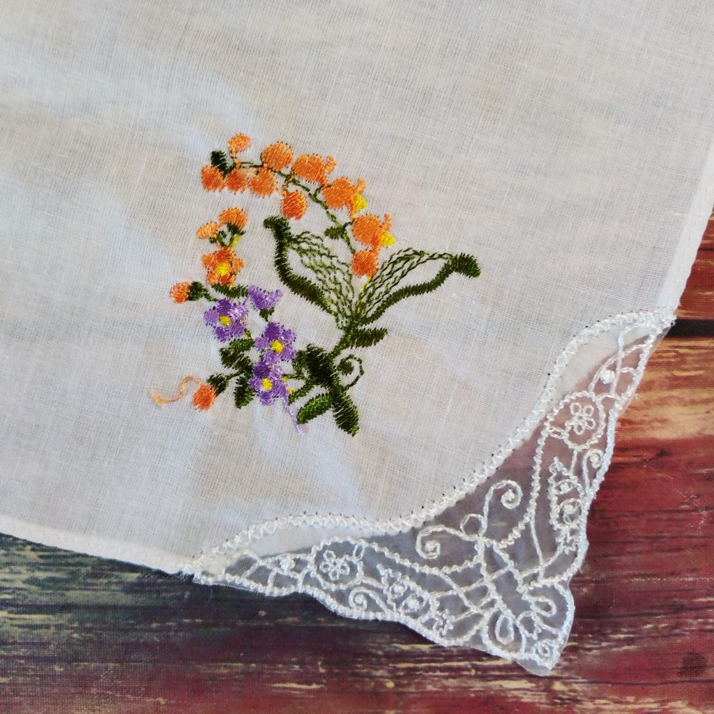 Платочки из хлопка, а уголок пришить из синтетических кружева и довольно грубого для носовой платочка. Конечно можно пользоваться, но раньше были более тонкие и нежные платочки.