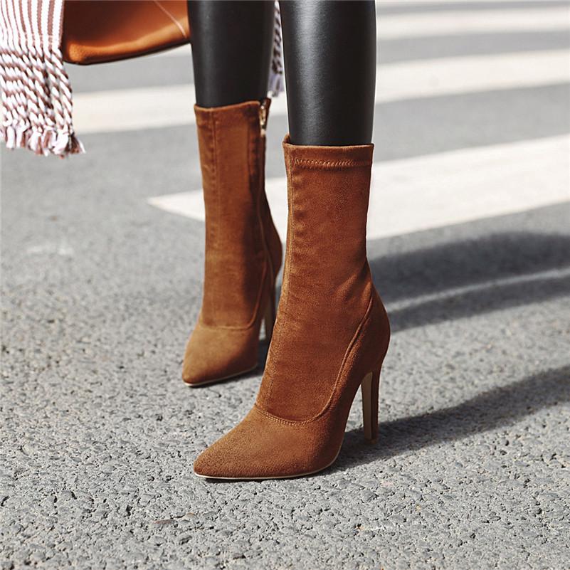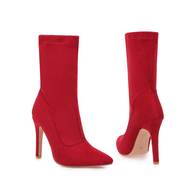 Meotina Осенние ботильоны, женские короткие ботинки на шпильке с застежкой-молнией, пикантная обувь на очень высоком каблуке, женская зимняя обувь красного цвета, большой размер 33-46