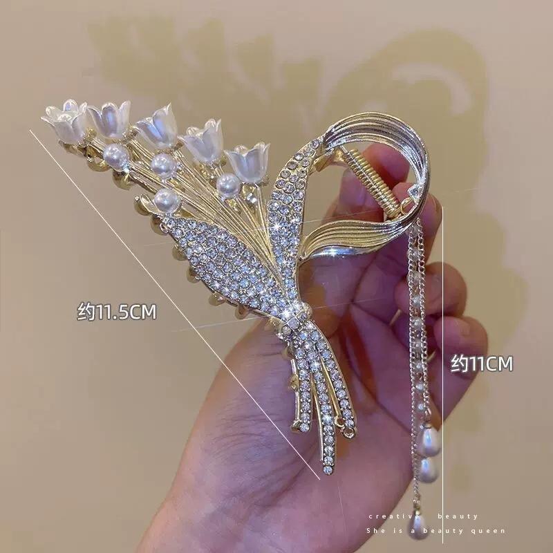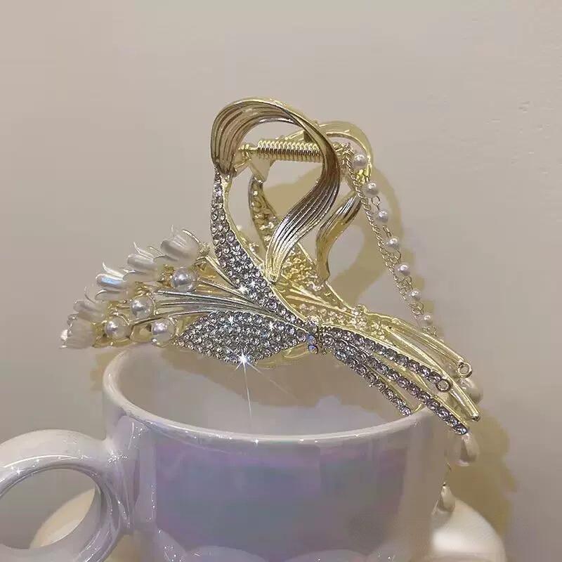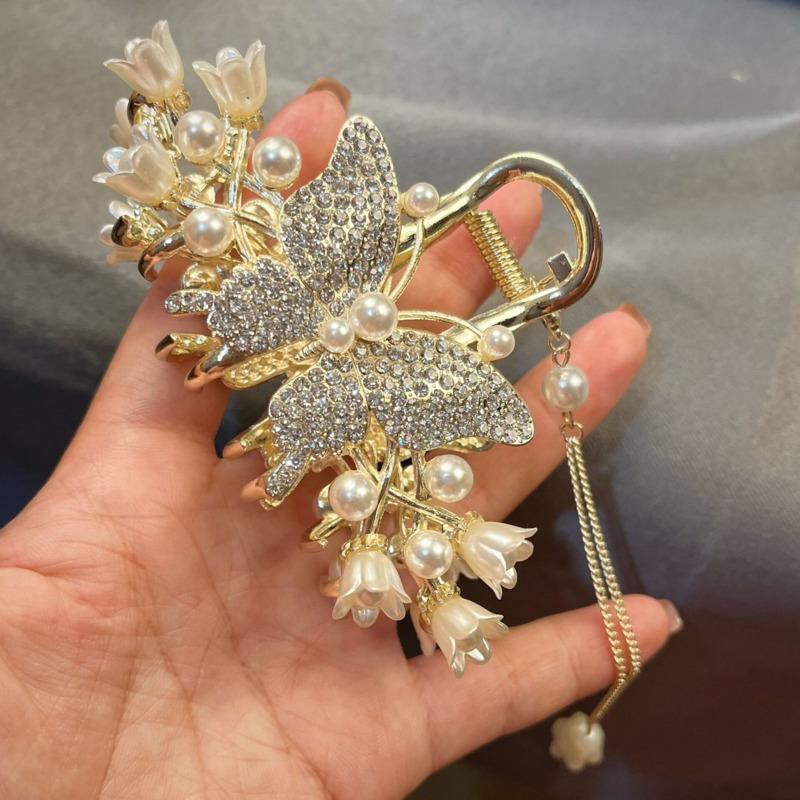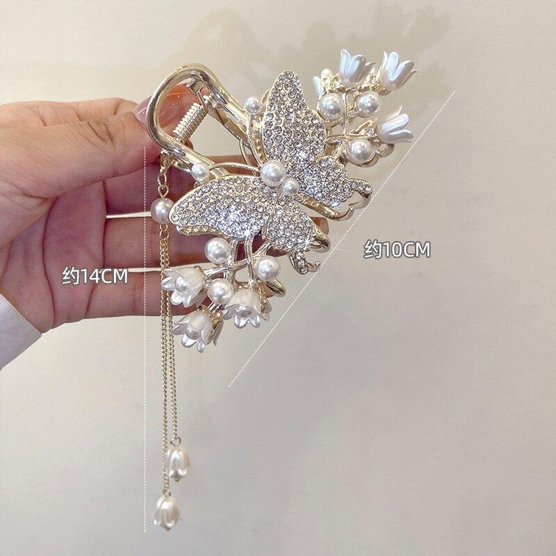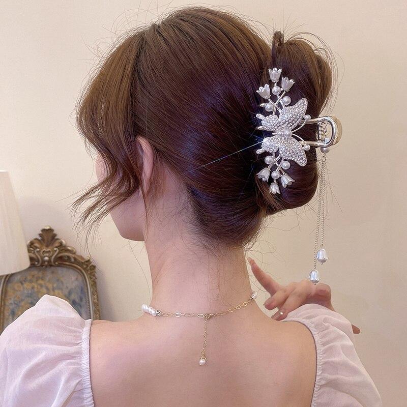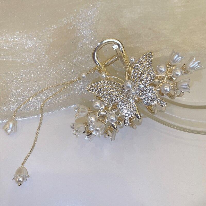 Элегантная заколка для волос с кисточкой и цветком в виде бабочки, изысканные заколки для волос с жемчугом и кристаллами, головные уборы с когтями для девочек, аксессуары для волос, заколка для волос