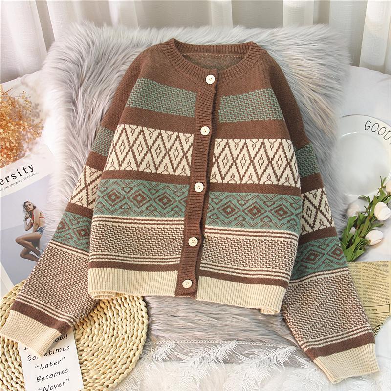 2022 осенне-зимний женский новый однобортный вязаный кардиган, свободный свитер с круглым вырезом, одинаковый по цвету, универсальный свитер