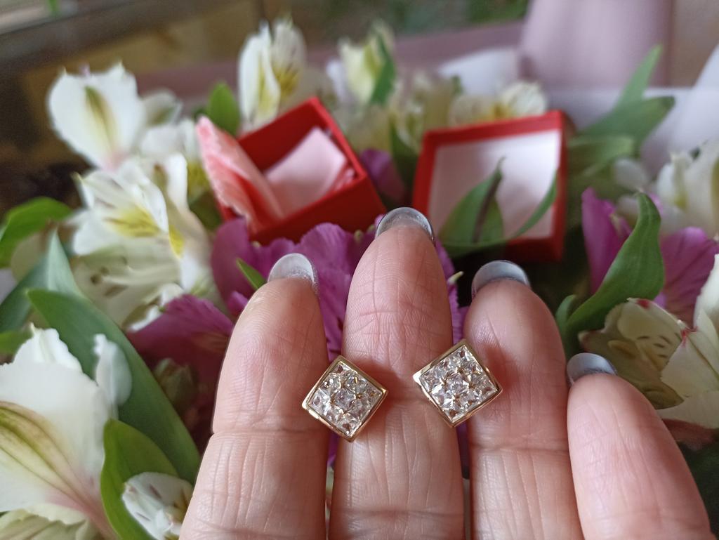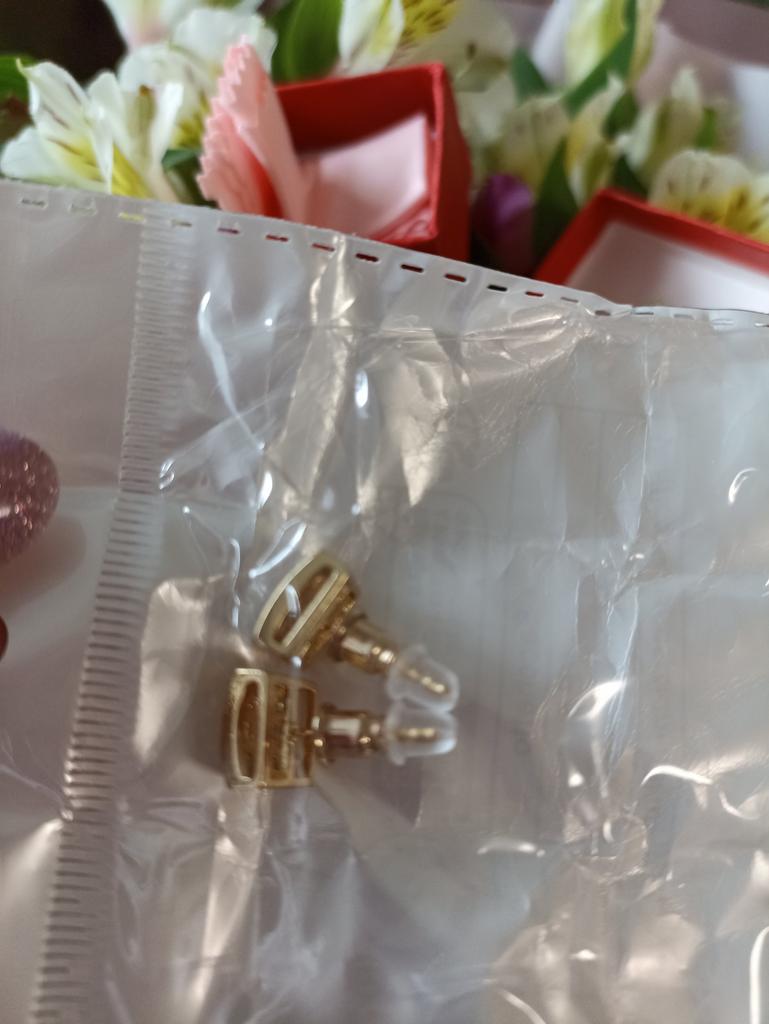 Красивые серёжки. Пришли хорошо упакованые, не поврежденные. Но к сожалению на ножке одной заводской брак, поэтому до конца не застегивается и не красиво на ушке. Очень жаль. Надеюсь в следующий раз все будет хорошо