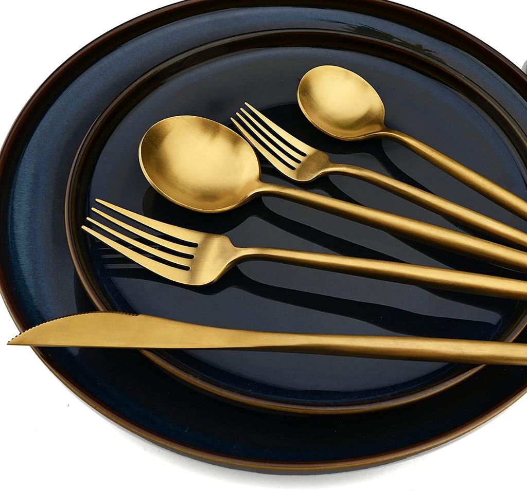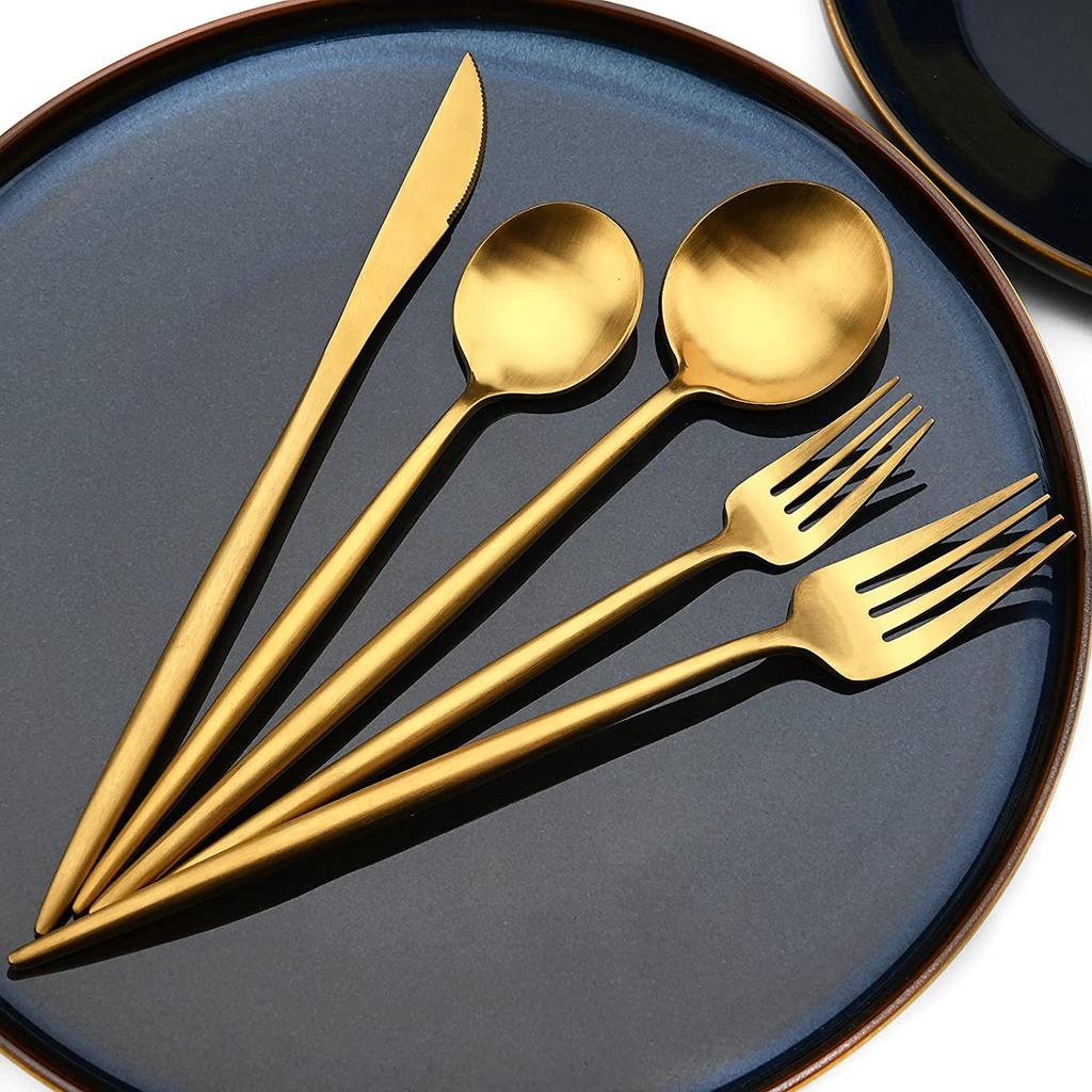 JANKNG 5 шт. тяжелая матовая золотая столовая посуда из нержавеющей стали 304, набор столовых приборов, столовые приборы, кухонная утварь, столовые приборы, набор столовых приборов