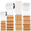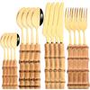Jankng 16 шт., набор посуды из натурального бамбука, золота, роскошный западный набор посуды, кухонная вилка из нержавеющей стали, ложки, набор столовых приборов